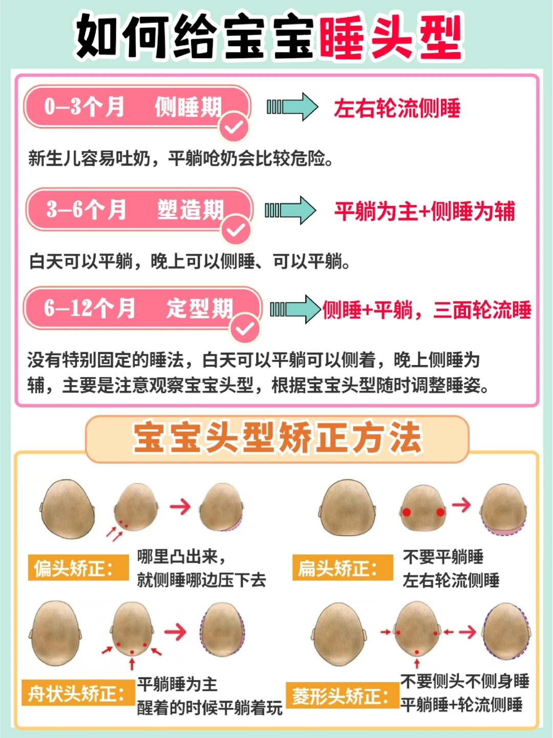 ✅重点:这个阶段是头型定型期,要经常观察宝宝头型的变化,及时矫正矫正。