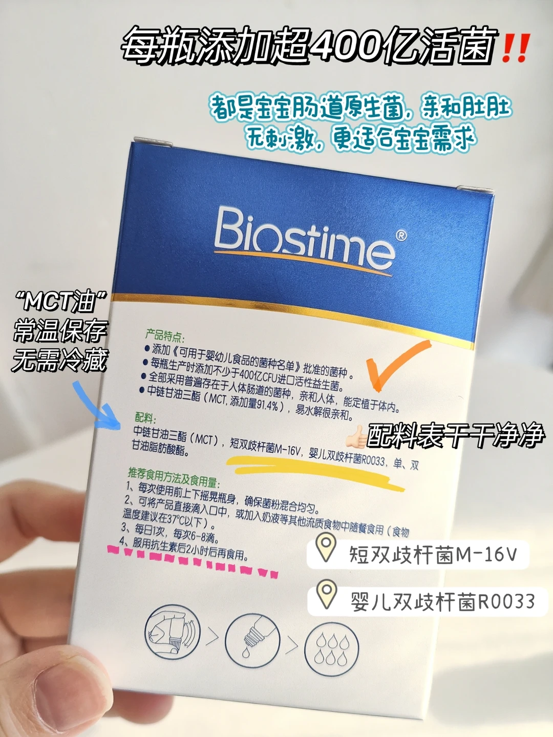 这两个菌株都是肠道原住民,对宝宝肚肚特别亲和!另外还添加了超400亿的活菌,而且还有MC T油保驾护航,活菌们稳妥到达肚肚,能更好的发力!