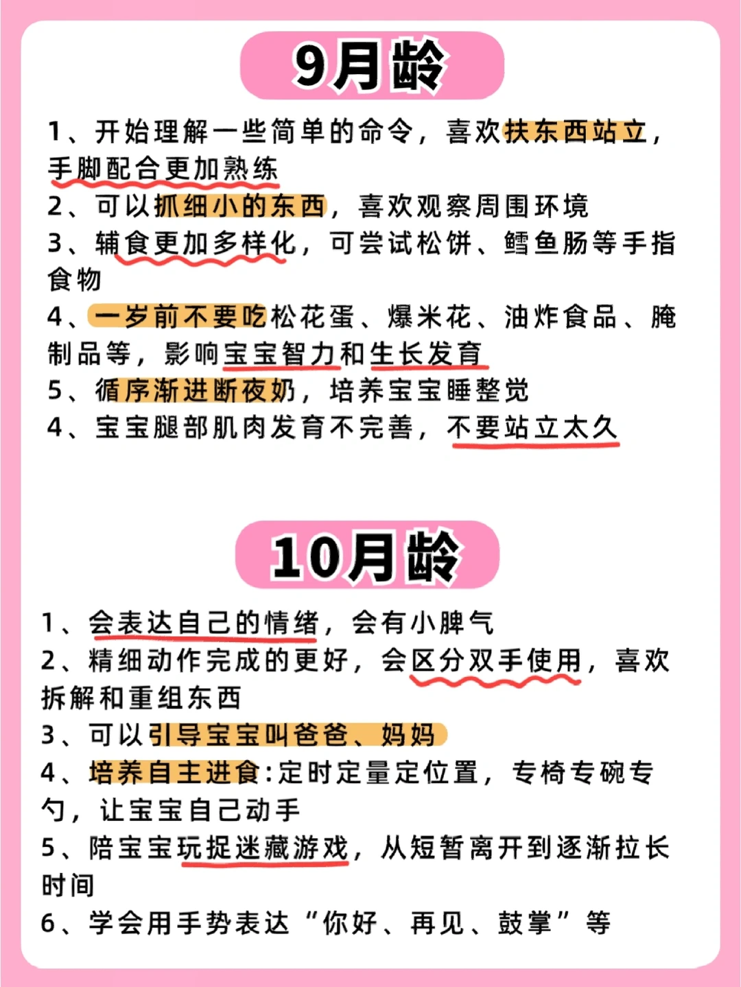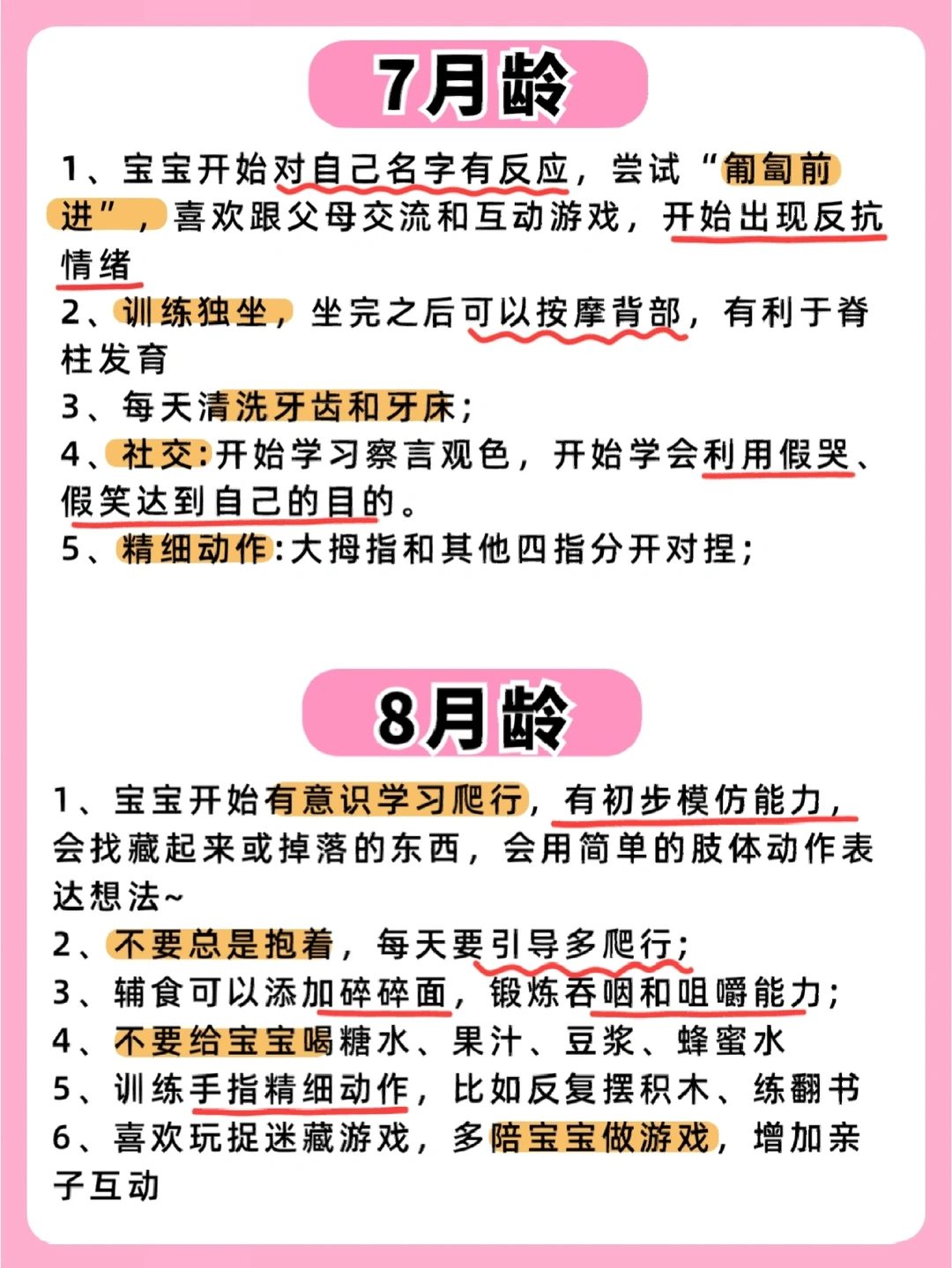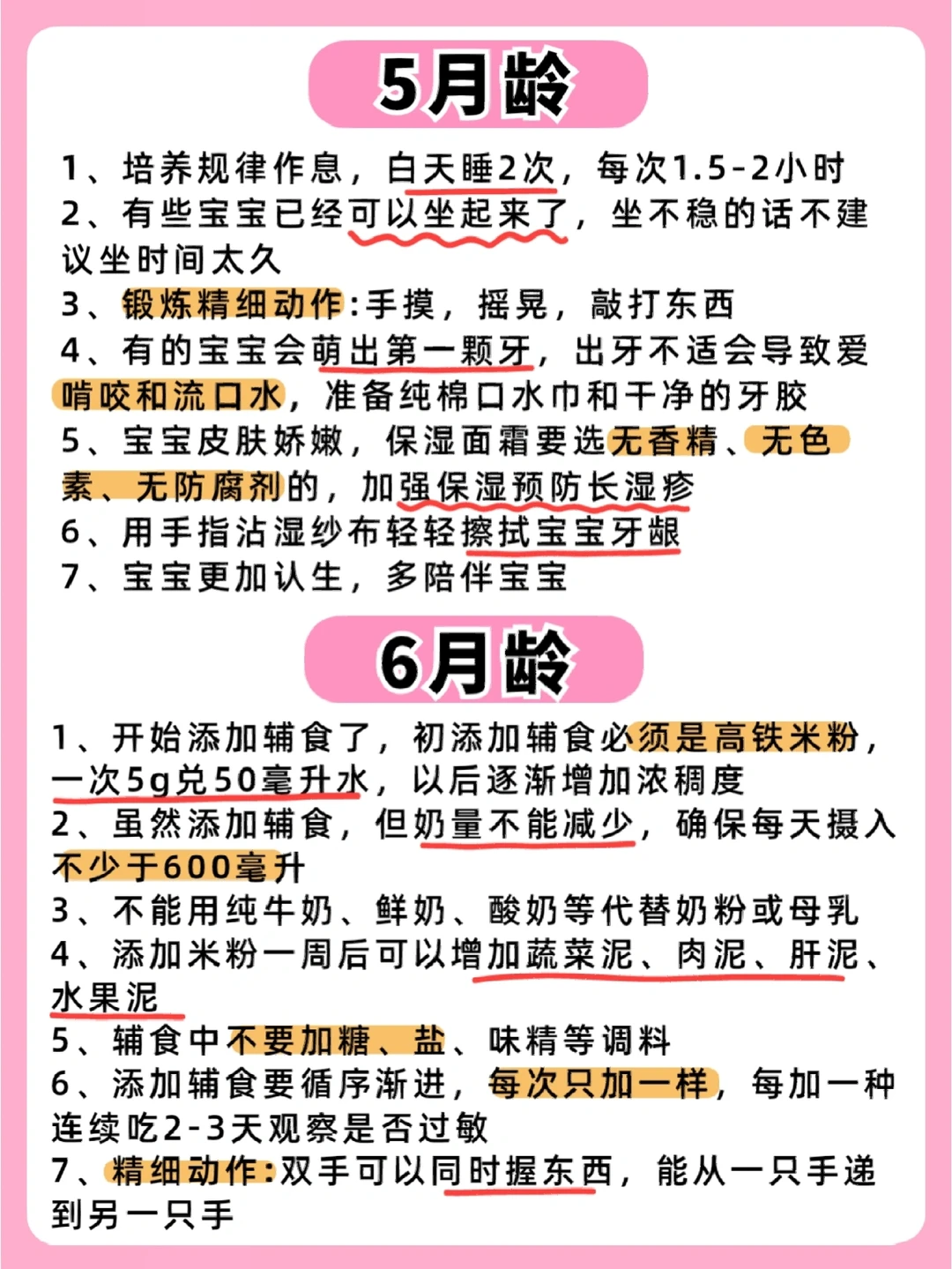 六辅食,七月坐,八月爬,九断夜奶,