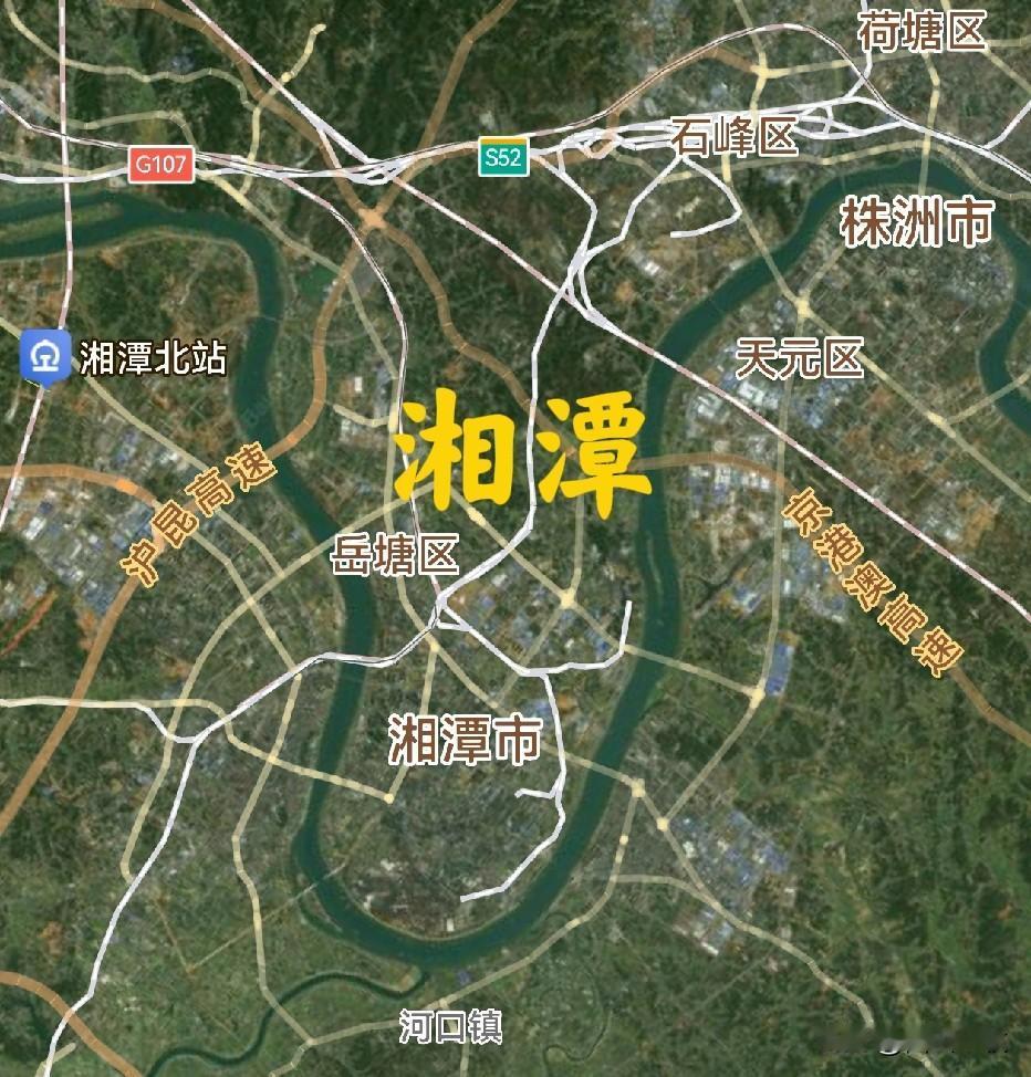 连续两个回头弯,两条江,一条叫贡江,一条叫湘江;两根“肠”,一曰会昌,一曰湘潭;