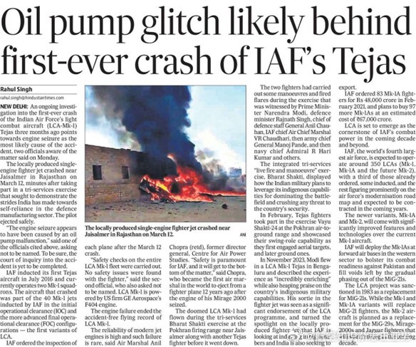 #航空创作计划# 前几天阿联酋迪拜航展上的坠机应该是印度“光辉”战机第二摔:“光辉”MK 1战斗机第一次坠毁发生在2024年3月12日,当时这架失事飞机也是在飞行表演,那次表演也很卖力,原因很简单,就是为了展示印度努力获得军事科技工业自主能力的决心。毕竟搞了这么多年,“光辉”是到了该放下琵琶露露脸的时候了。结果,飞机摔了,但是飞行员跳伞逃生成功了。结果一调查,嫌疑立即集中到发动机上。“光辉”战机使用的发动机是美国货——通用电气的F404涡扇发动机,应该说这是一款高性能发动机,可靠性经过多年服役检验,不应该有啥大问题。但事故调查开始后,有印度空军知情人士透露说高度怀疑事故原因是滑油泵故障,导致发动机无法正常润滑,最终出现了主轴抱死问题,酿成此种惨祸。不过我查了半天也没看到这次事故的最终结论——没结论也正常,毕竟这涉及到军事敏感信息和美印关系,估计通常也不会拿出来大张旗鼓地说。如果真是滑油泵问题导致了发动机歇菜,那还真是可怕。联想到刚刚在阿联酋摔掉的这架“光辉”也曾有停机坪“漏油”的前科,是不是调查时还是得重点考察滑油系统?许是应该。