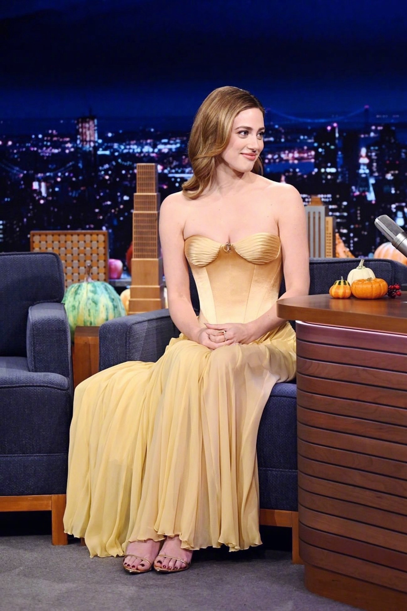 女演员 Lili Reinhart 亮相今夜秀,身穿 Georges Hobei