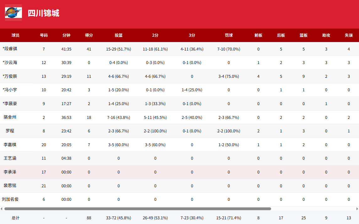 四川U19男篮:段睿骐41分、骆金州18分、万俊辰11分