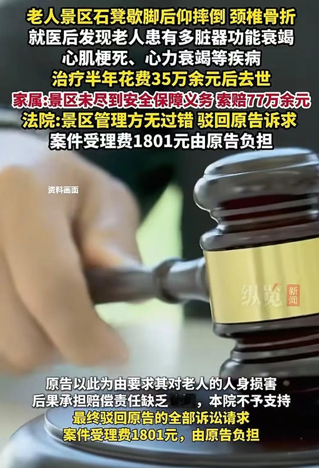 这次法院太给力了!七旬老人在家人陪同下,去西湖某景区游玩,在石凳上休息时突然后仰摔倒,最终不幸离世。面对这场令人心碎的悲剧,家属索赔77万,法院的判决却让人拍手叫好——不仅彰显了法律的温度,更传递出社会对弱势群体的关怀与责任。 你是否曾在旅游景点感受到那份“安全第一”的责任?每一块石头、每一张座椅,是否都经过了严格的安全检测?这次判决的背后,是对景区管理者的警示,也是对所有公共场所的提醒:责任不可推卸,安全无小事。法院的判决不仅仅是对逝者的追思,更是对未来的警醒,让景区管理者从“疏忽”中汲取教训,落实每一项安全措施。 更值得一提的是,这份判决折射出一个社会的良知——法律不是冷冰冰的条文,而是维护正义、守护生命的坚实盾牌。网友们纷纷点赞:“如果全国的法官都能像这次一样认真、负责,法治的光辉一定会照亮每一个角落。”这句话道出了许多人的心声:只有法治真正落到实处,弱势群体才能多一份保障,社会才能多一份温暖。 但也有人开始反思:我们是不是在无形中忽略了安全教育和公共责任?景区管理者是否真的尽到职责?这场悲剧,像一面镜子,映照出我们每个人的责任感。作为游客,我们是否也应当多一份警惕和自我保护意识?作为管理者,是否应当用心守护每一位游客的安全?这是每个人都应深思的问题。 这起案件的判决,激起了社会广泛的讨论,也让我们看到了法律的力量和责任的重量。它告诉我们,生命无价,责任重于泰山。我们期待更多像这样的判决,让法律成为保护弱者的坚强后盾,让每个人都能在安全中享受生活的美好。 在这个快节奏的时代,或许我们都需要停下来,思考一下:我们能为这个社会做些什么?也许,点滴的责任感和安全意识,就能汇聚成一股温暖的力量,推动社会的进步。让我们共同期待,未来的每一个角落,都能多一份安全与关爱,让悲剧不再重演,让正义的光芒照亮每一个角落。西湖老人 安全