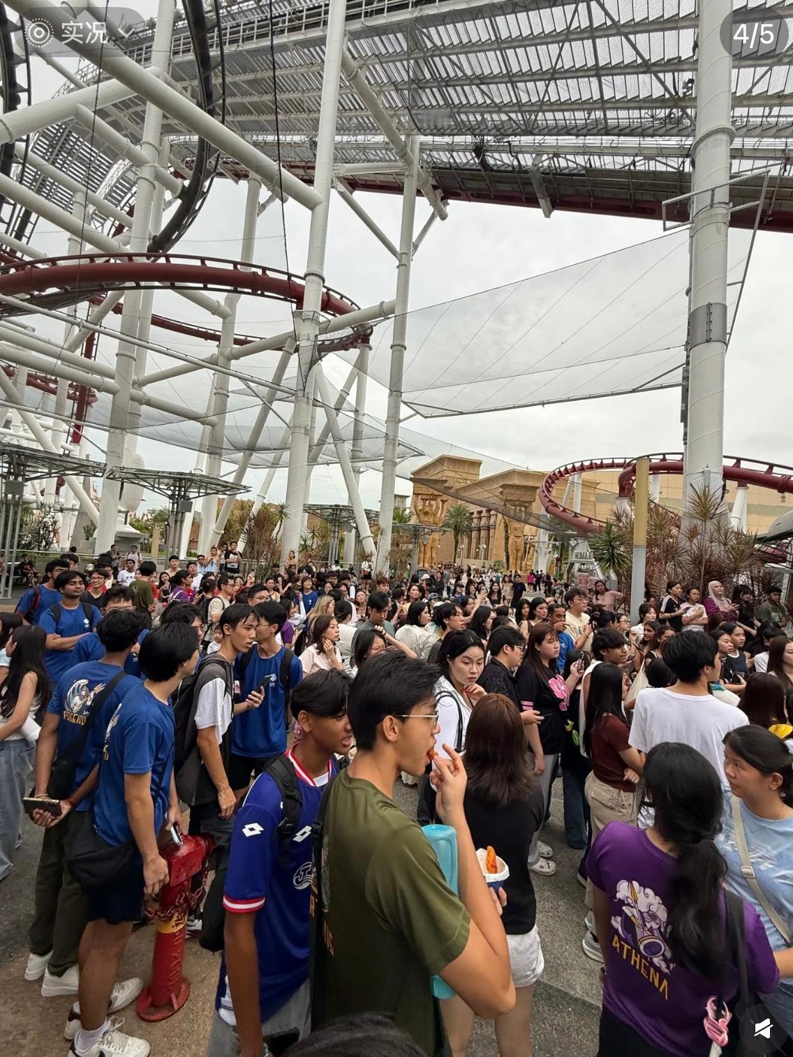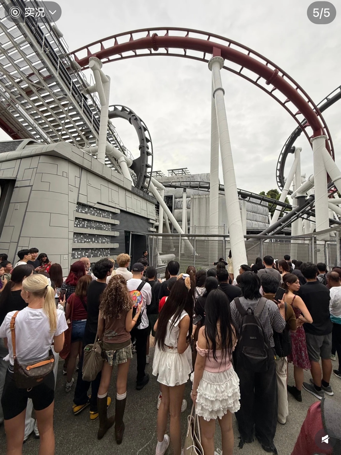 怎么那么逗呀,霞儿玩个过山车竟然被这么多人围观了 新加坡环球影城偶遇lisa