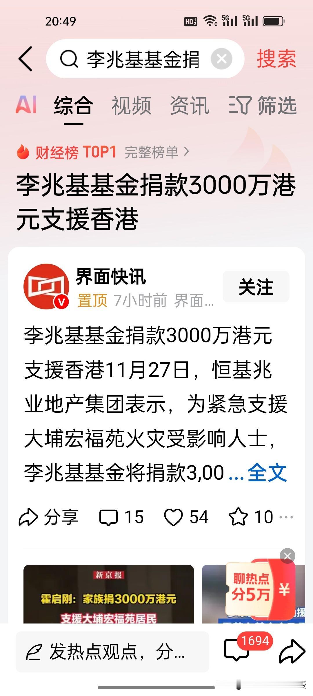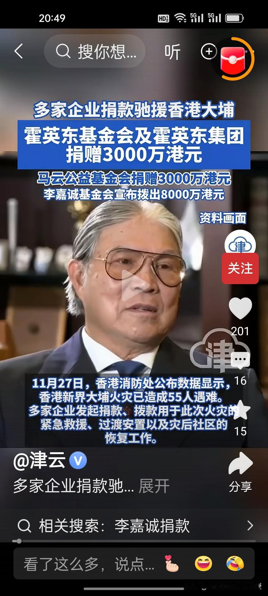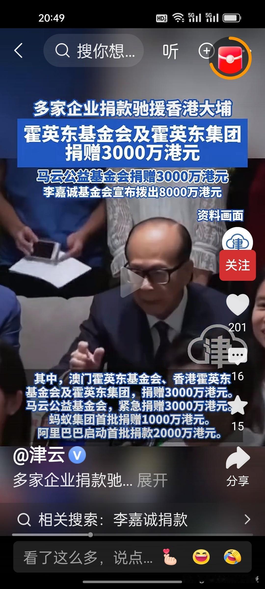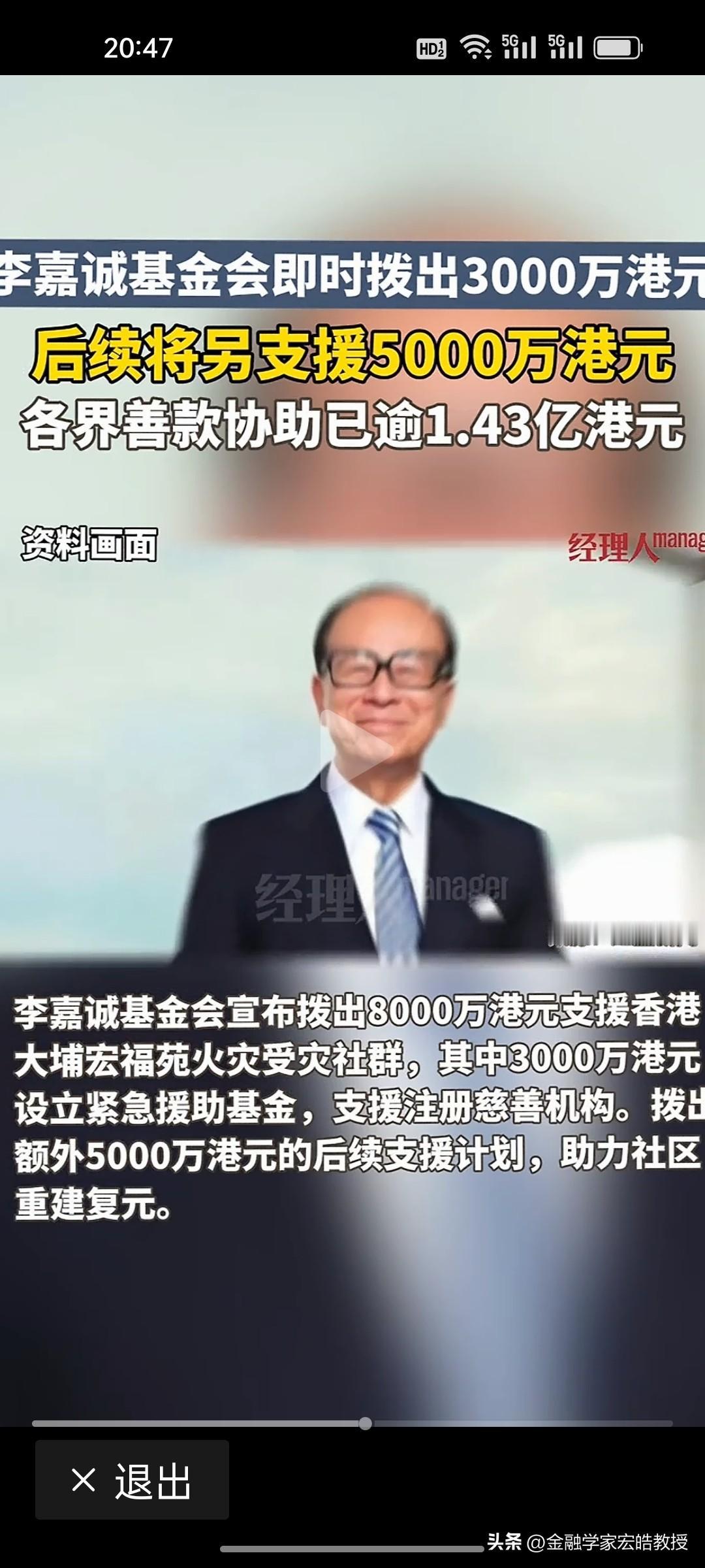 李嘉诚家族这次不再沉默!今天,李嘉诚基金会宣布捐款8000万港元支援香港受灾群众包括重建复原,是捐款最多的香港富豪。李兆基,霍震霆家族均捐款3000万港元支援,周大福集团捐2000万港元,另外,阿里系共捐款6000万元,是内地捐赠最多的企业。 李嘉诚家族此次8000万港元的捐赠,在香港富豪群体中的领跑之举,延续了其深耕公益的一贯坚守。据不完全统计,李嘉诚基金会至今共计捐出逾300亿港元支持公益。