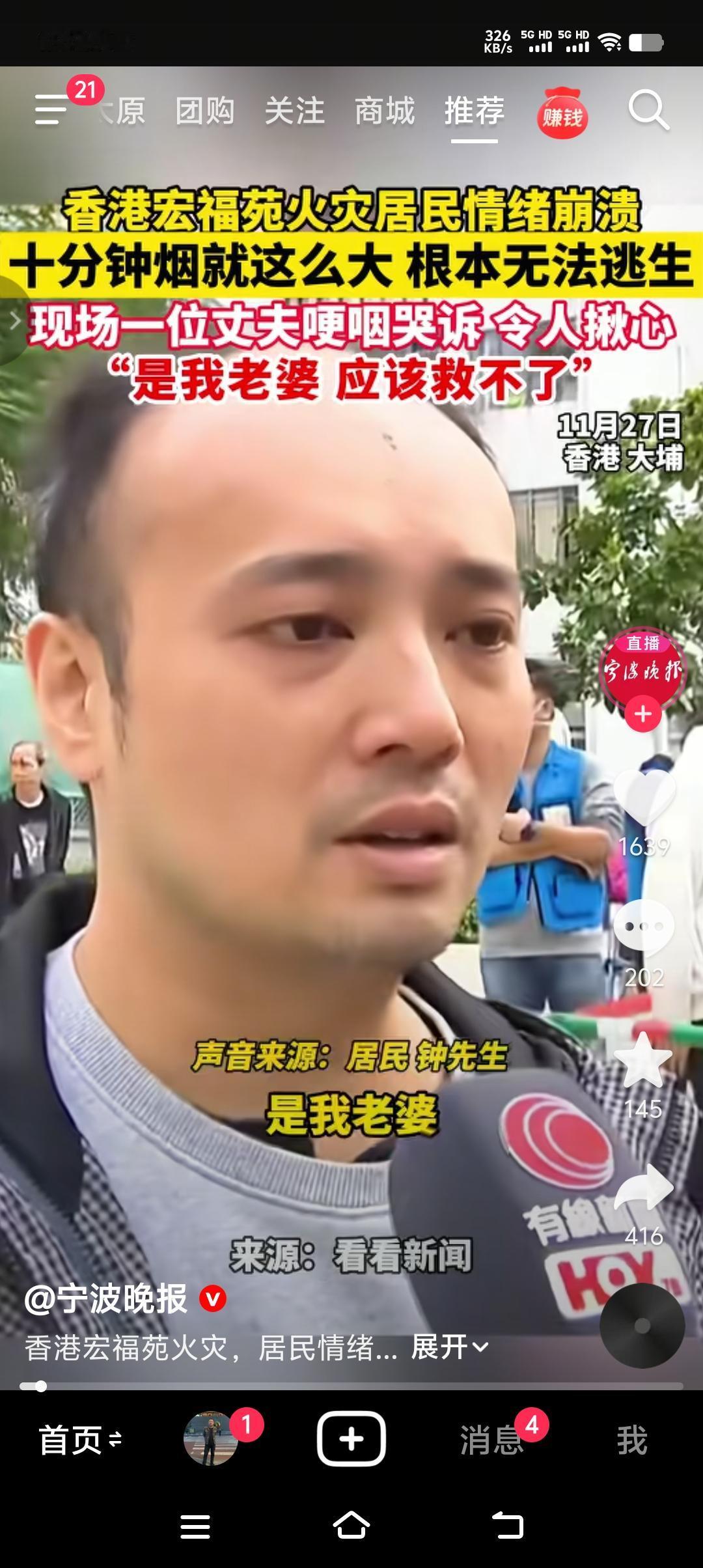 发生火灾的宏福苑建于1983年,这种老塔楼都有一个致命的伤,那就是厕所与厨房之间有凹槽式的天井。在这次火灾中,这个没有被防护分隔的天井,就成为了一个“拔火烟囱”。5楼到32楼,火势只需30秒直冲楼顶。温度瞬间超过800度,铝合金门窗瞬间软化,玻璃爆破,对居民生命安全造成极大的威胁。 不到10分钟,火势已经无法控制,困在里面的人根本逃不出来。此次火灾造成55人遇难,这55名不幸者应该是没发现火情或者是等到发现火情已经来不及逃了,他们居住的位置可能就是天井的位置,也是火势最猛的地方,要么是烧死要么是呛死。真是叫天天不应,叫地地不灵,想一想当时的场面,真是让人心痛。在绝望中死去,人世界还有比生命更珍贵的吗?