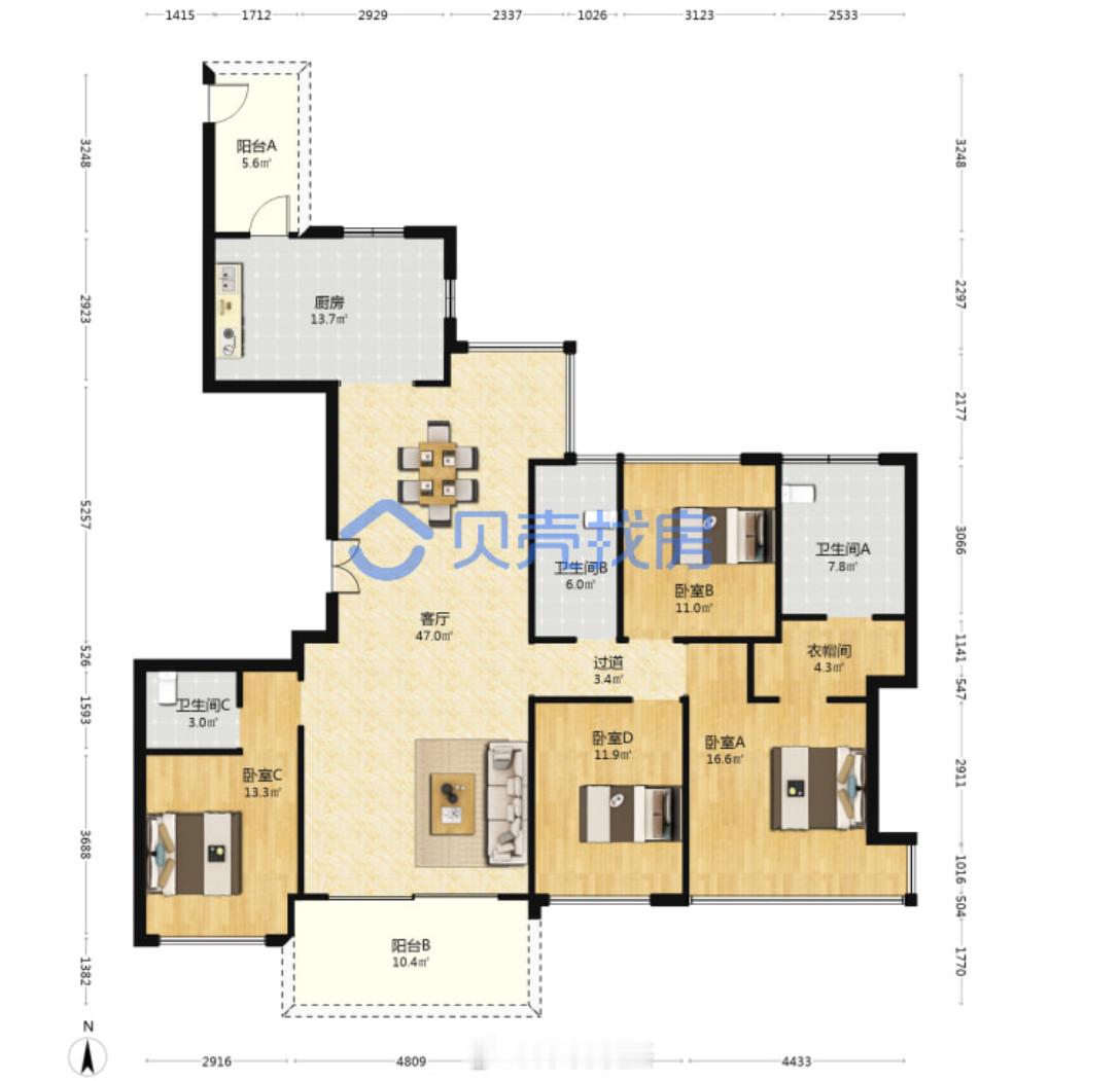 深圳福田海德园笋盘:249平4+1房4卫,价格:3180万,单价12.7万。毛坯