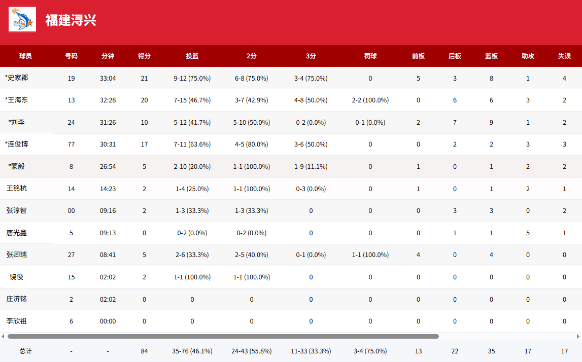 福建U19男篮:史家郡21分、王海东20分、连俊博17分
