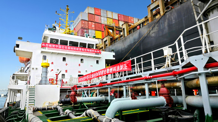 2025年7月,中国石化燃料油浙江公司在宁波舟山港为“凯斯廷”轮加注5700吨生物燃料油,刷新了中国石化国内B24低硫生物船燃加注纪录