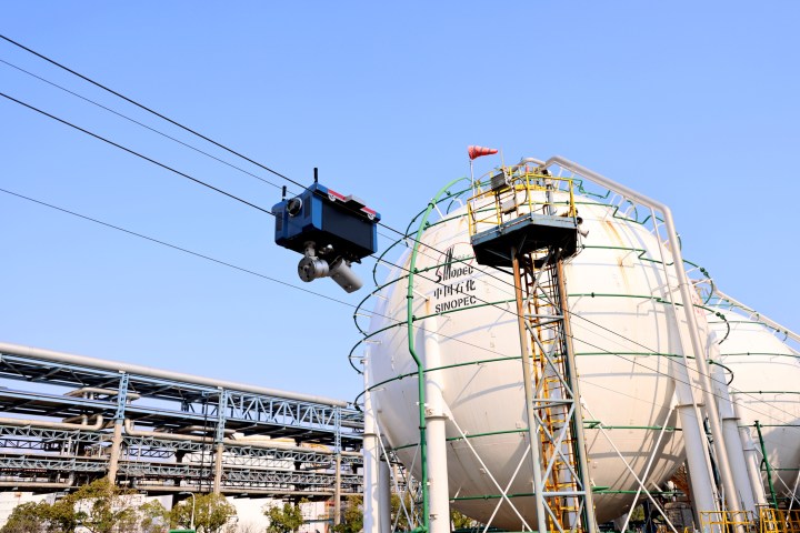 在镇海炼化厂区有一款在半空来回穿梭的机器人,是中国石化首个飞索智能巡检机器人,它将先进的机器人技术与无损传感物联网结合,实现了1.2万平方米球罐区高空瞭望、中段巡航、地面守卫的“立体式”巡检。现场“望、闻、问、切”的各类数据信息会在第一时间反馈至物联网智慧中枢并关联中控管理平台、DCS系统,依靠AI智能算法系统并结合大数据深度思考,以每秒百万次的计算力和毫米级的感知精度,将筛选后的异常情况反馈给操作人员提供操作参考。