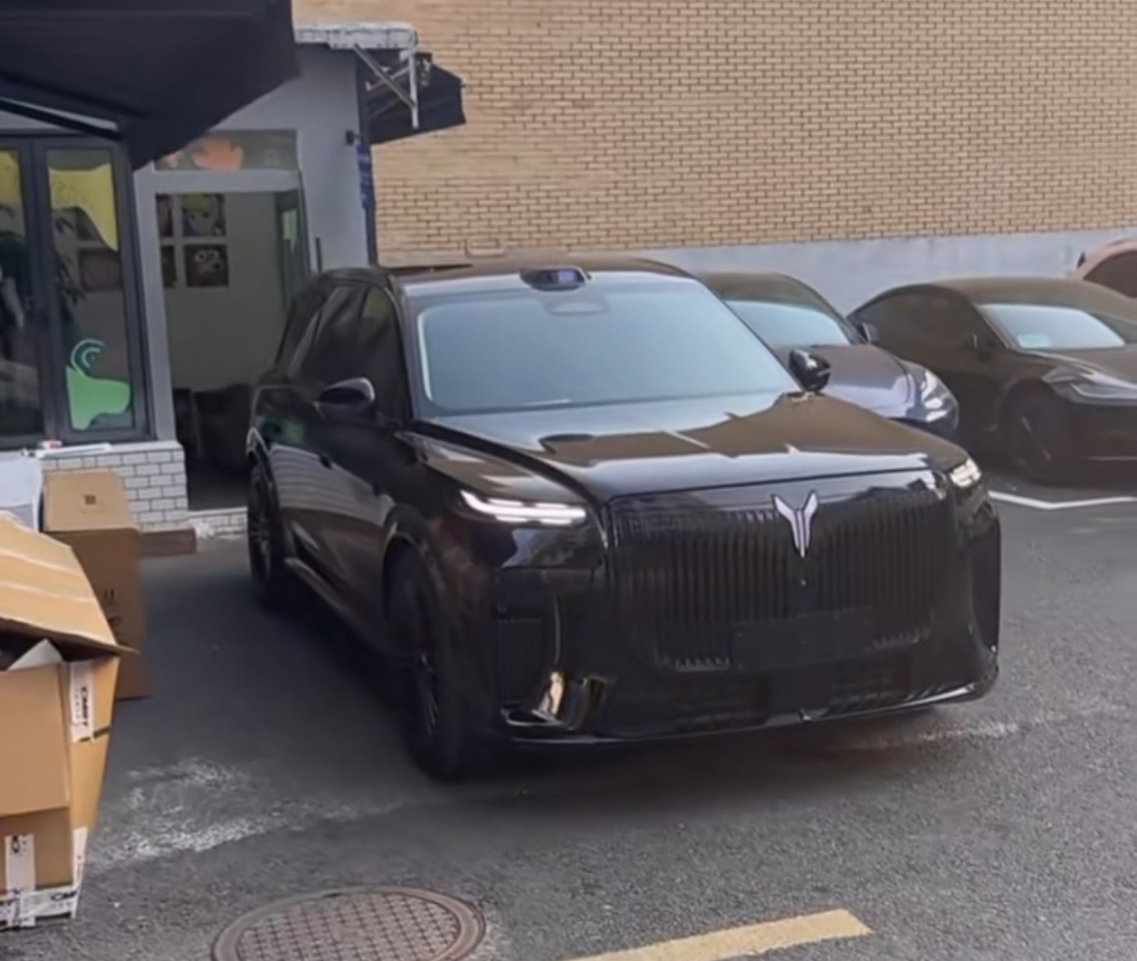 第一次见黑武士的岚图泰山。大尺寸中网、大尺寸车身,配全黑涂装,看着确实够帅。