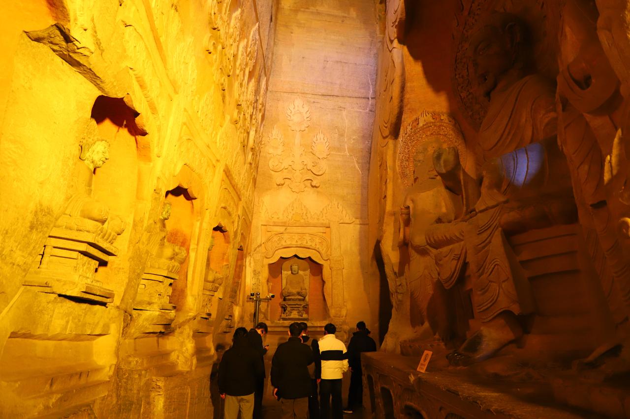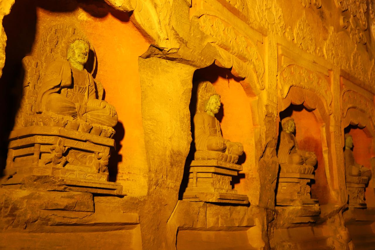 这里是中国北方石窟艺术的瑰宝。北齐的工匠们怀着虔诚之心,在坚硬的石壁上雕琢出一尊尊栩栩如生的佛像,那 “曹衣出水” 的衣纹,既有鲜卑族的豪迈,又有汉文化的细腻。大佛洞中的 5 米高释迦牟尼坐像,背光以七条火龙为主体,气势恢宏,仿佛能让人穿越回那个佛教盛行的时代。刻经洞中的石壁佛经,更是开创了石窟刻经的先河,楷、隶、篆融合的书法,堪称 “中华第一刻经”。 站在石窟内,击掌或甩袖,便能听到洪亮的回声,仿佛千年前的僧侣仍在诵经。这独特的声学效果,为响堂山增添了几分神秘色彩。而常乐寺遗址、宋塔等古迹,也在岁月的洗礼下,诉说着往昔的辉煌。 响堂山石窟,不仅是艺术的殿堂,更是历史的见证。来这里,感受千年文化的沉淀,让心灵得到一次洗礼吧!