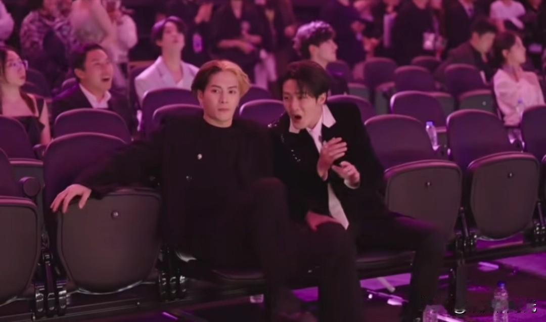 网友:一想到一会儿他俩要干什么就想笑。 本来这俩在看节目,有工作人员提醒王嘉尔注意捂耳朵,但这弟弟没听懂,随后他就和檀健次跟着音乐打起了节拍。 一曲终了,突然一声爆响,是放礼花的声音,把沉浸在音乐中的俩人吓得表情包都出来了,慌乱之中王嘉尔抓住了檀健次的大腿,险些掉下椅子。 这俩尤其是王嘉尔,大概心里在想:应该没人看到吧? 徐志胜咧嘴一笑:很不巧,我们都看到了呦。 有网友说,这段看了十几遍,是檀健次的反应把王嘉尔吓到了,只是没想到王嘉尔这反应比他还大,直接成为了焦点。
