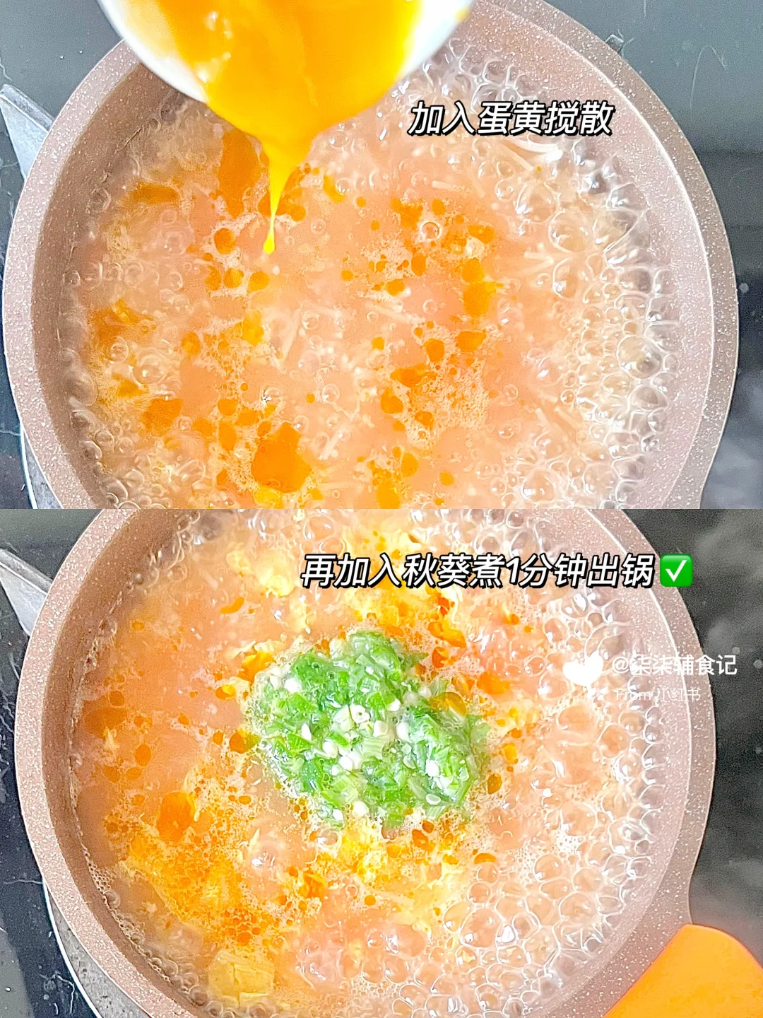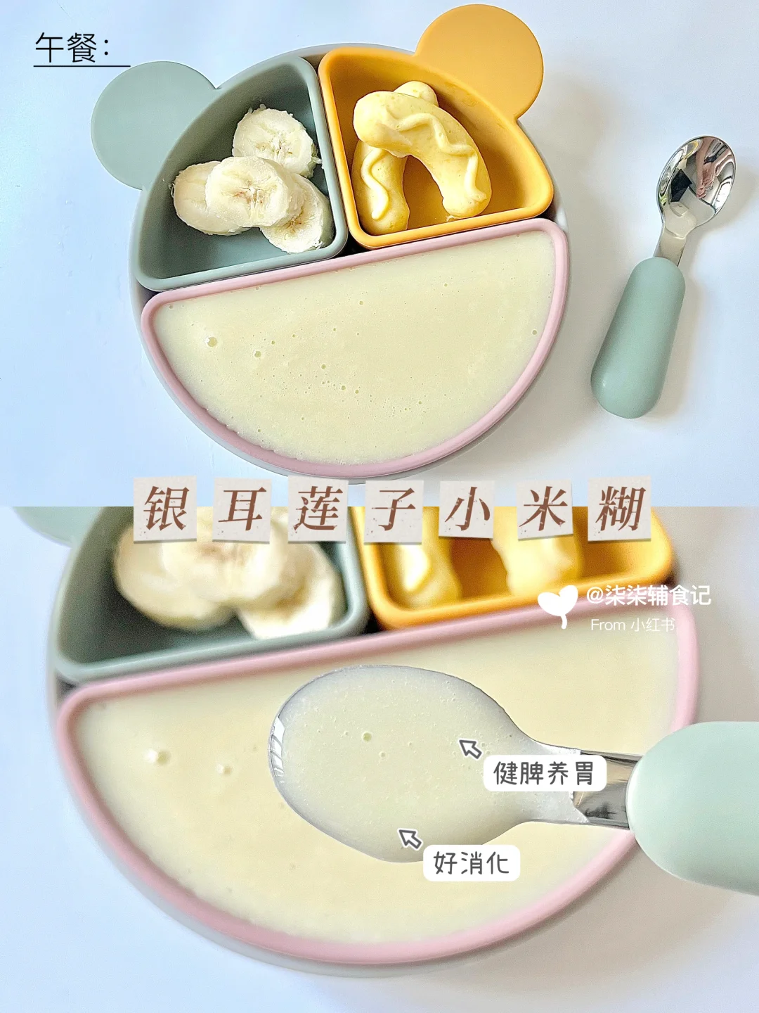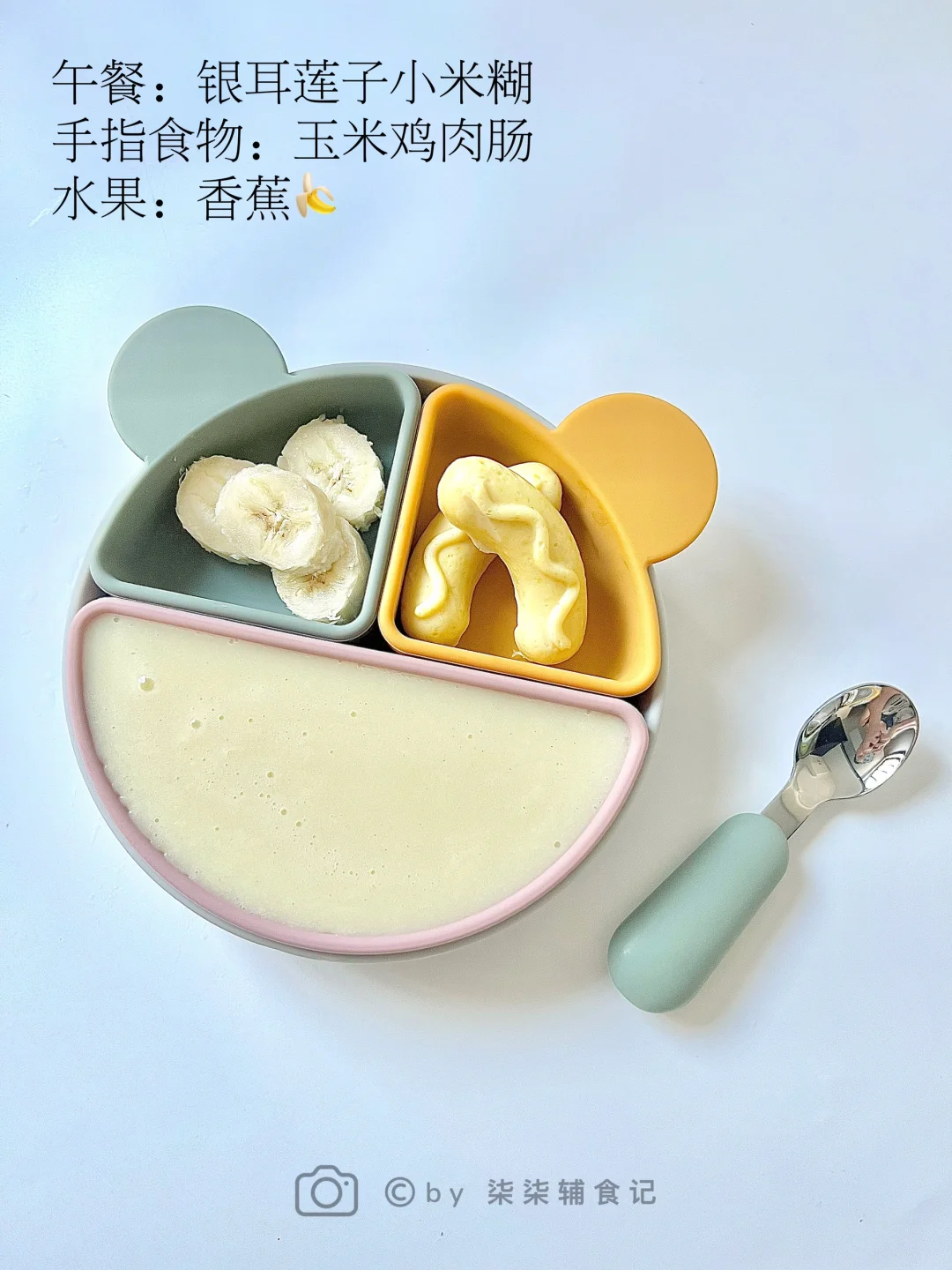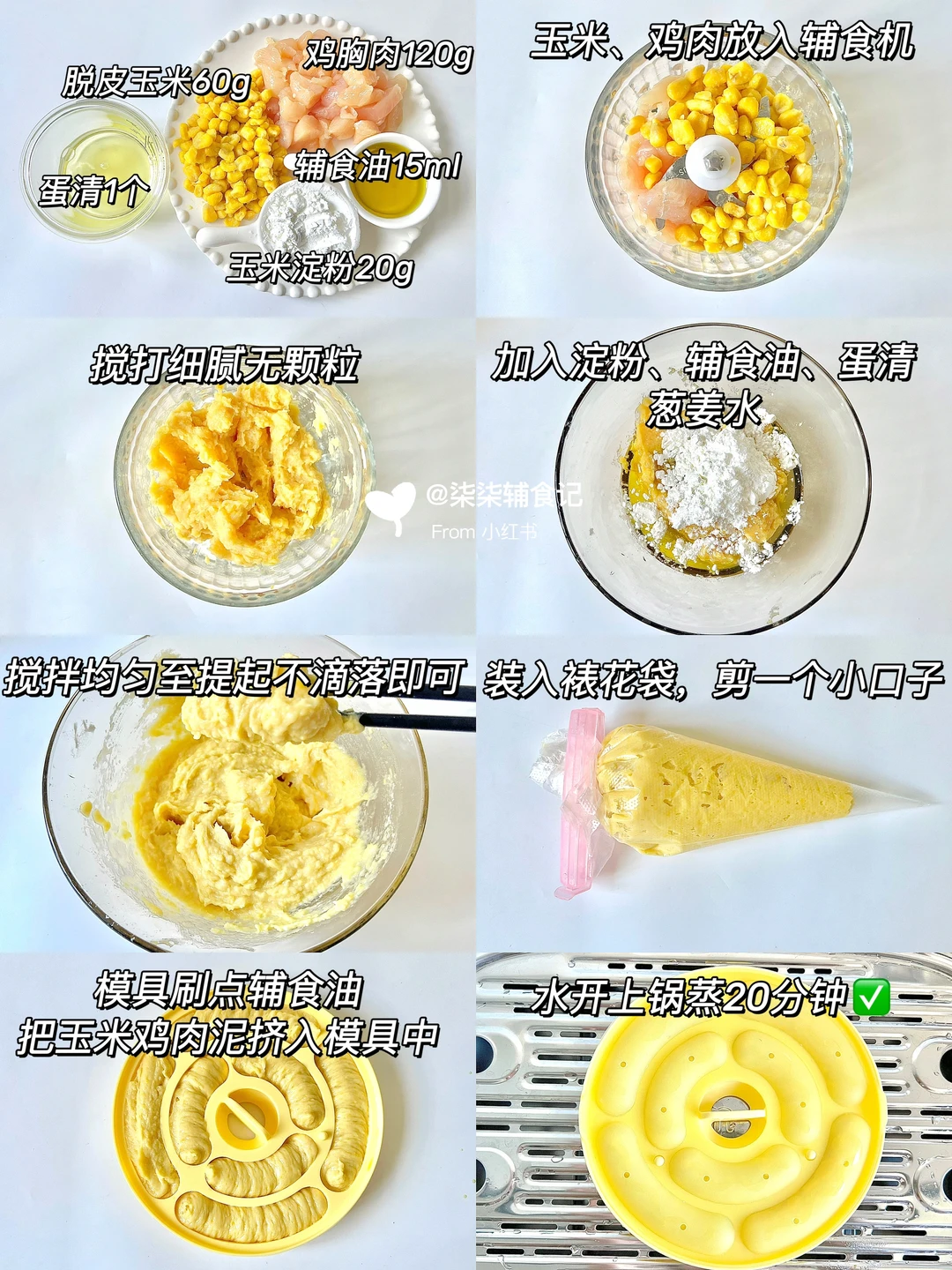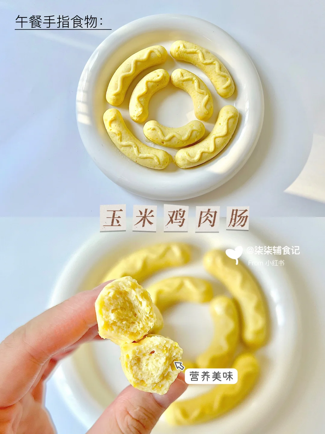 👧:10个月➕15天 ⏰:午餐11:30 🥣:银耳莲子小米糊 🤌:玉米鸡肉肠 🍽️:水果:香蕉 ⏰:晚餐18:00 🥣:番茄鸡腿浓汤面 今天解锁新手指食物~玉米鸡肉肠啦~ 午餐吃银耳莲子小米糊和玉米鸡肉肠,玉米鸡肉肠好好吃呀😋大一点的宝宝可以加酱油之类的调味品会更好吃哦~葱姜水就是用葱和姜加点水用辅食机打,打完就是葱姜水啦,大概加了10~20ml左右 🔺所有食材处理的时候记得控干一下水分哦~不然太稀了就不好成形啦~ 煮完才发现中午的色系是奶白色哈哈,一整盘奶奶的~ 晚餐番茄秋葵蛋黄面,中午用了蛋清,剩一个蛋黄,刚好用来煮面吃~ ⚠️食材分量根据宝宝的食量添加。 ⚠️食材大小根据宝宝的咀嚼能力处理。