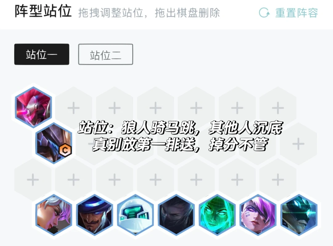 狼人吃黑客,其他人顶脸站位,其他人沉底跟黑客德莱文差不多,真的不要顶脸站位,掉分不管。