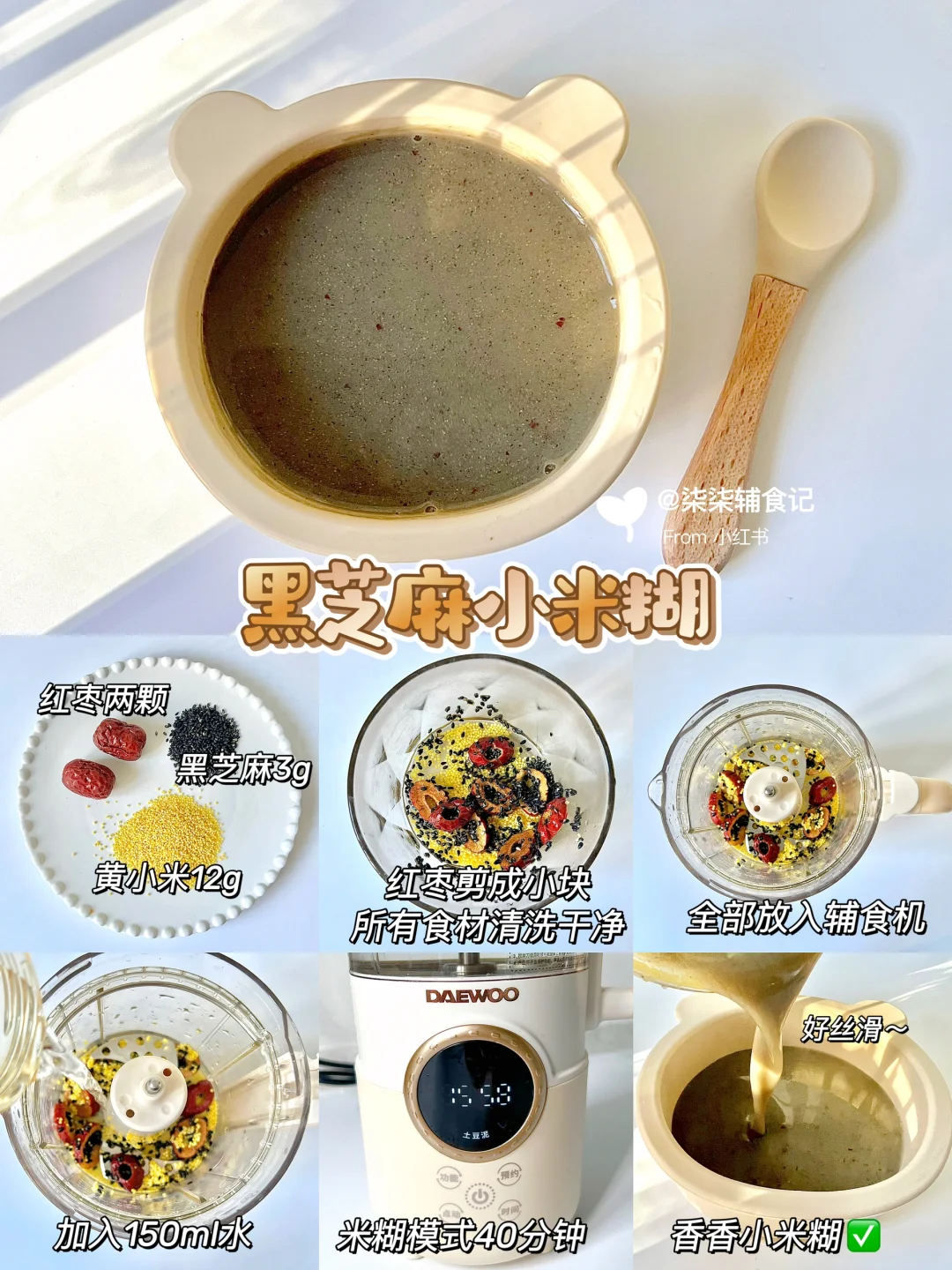 黑芝麻3g➕黄小米12g➕红枣2颗➕清水150ml