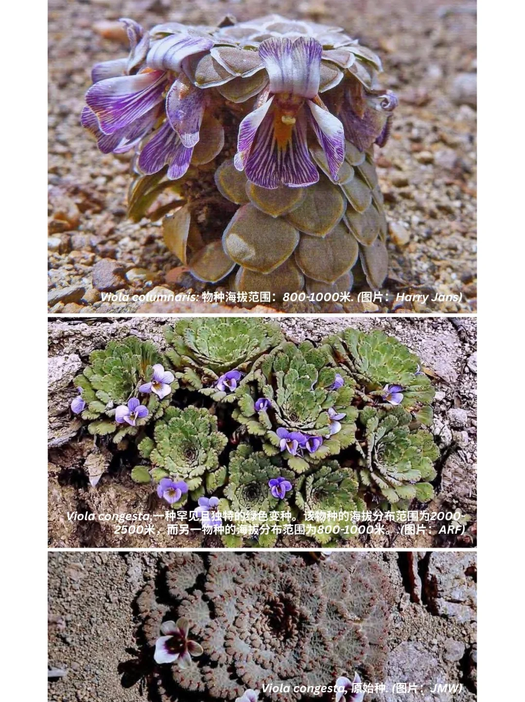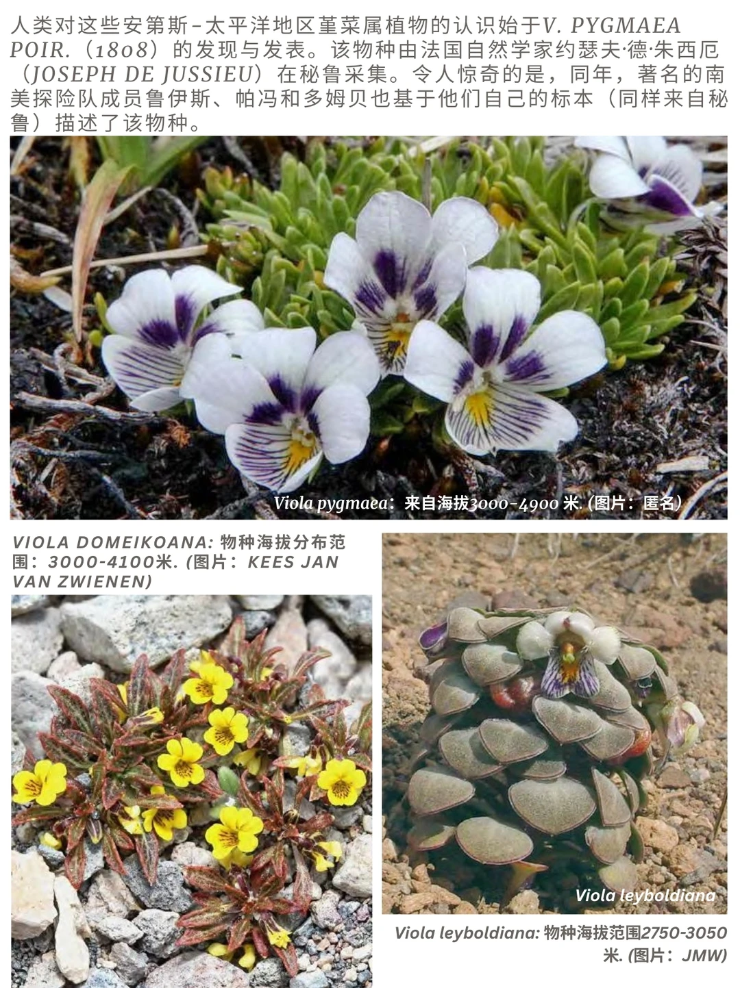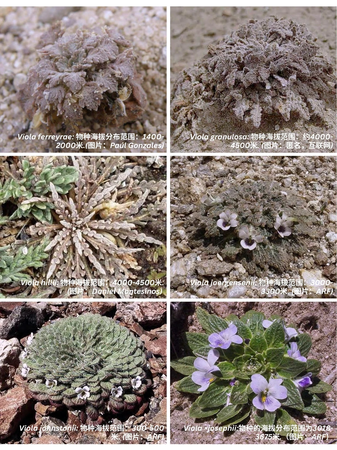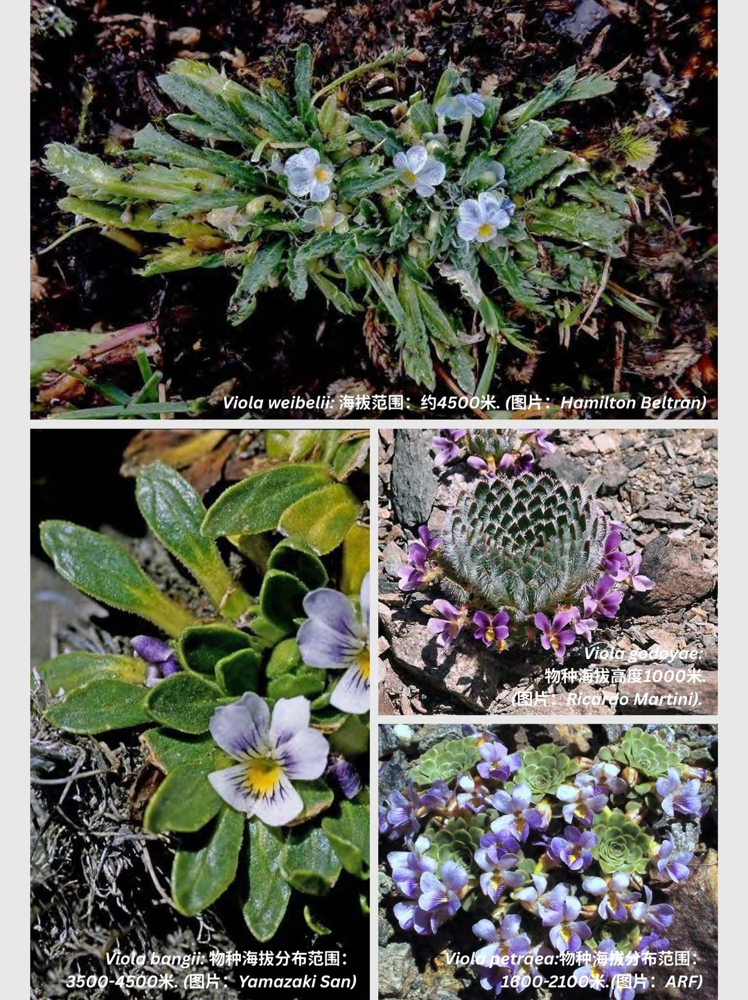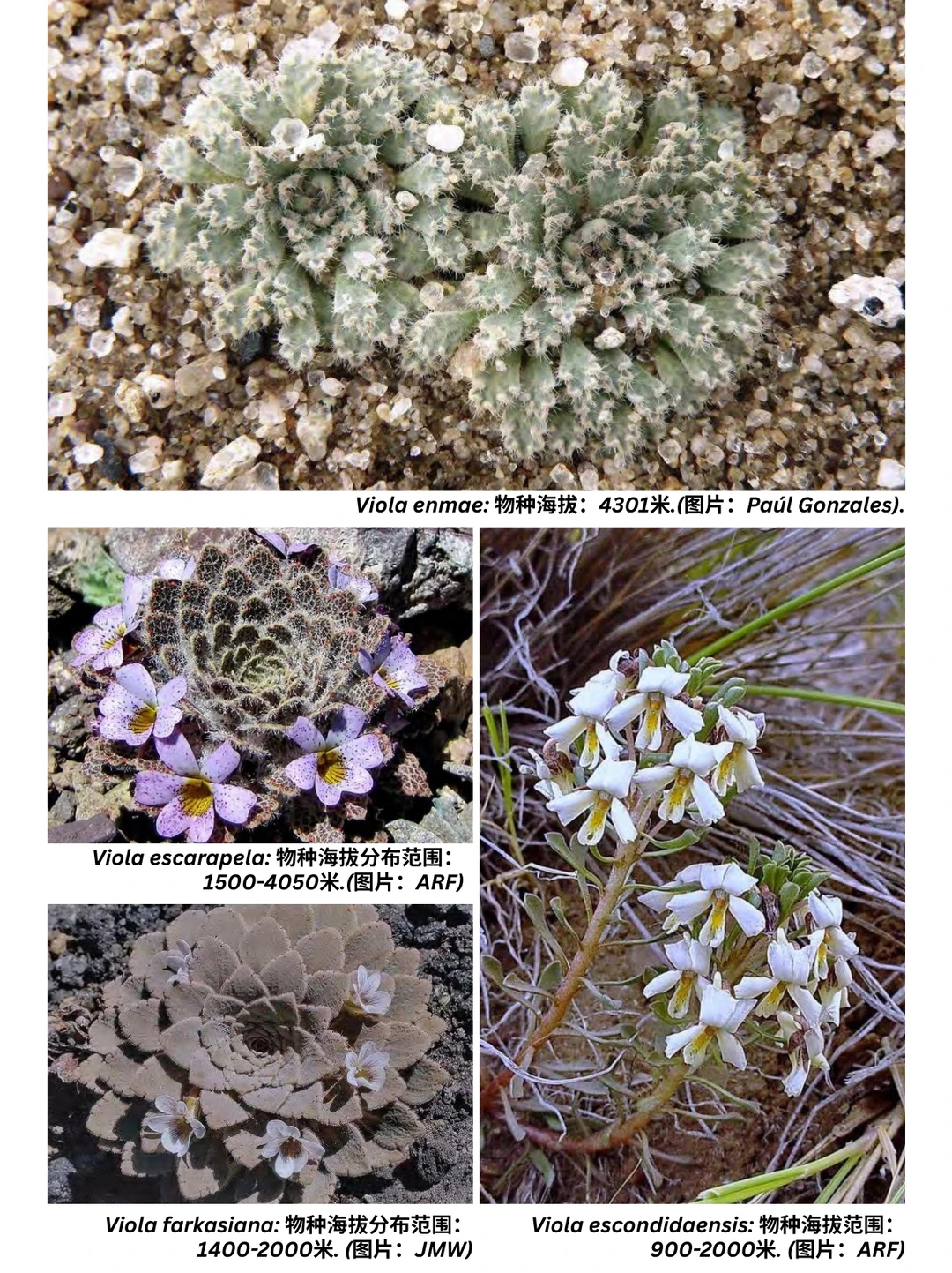 安第斯山脉 高山植物 堇菜科 堇菜属 Viola 莲座 该分类群与属内其他物种的分化时间可追溯至2900万年前。这一发现,结合这些物种对安第斯山脉抬升和更近期的地中海气候条件的特殊适应,解释了为何该属的许多分类单元在整体外观上,与其他所有堇菜属物种截然不同。