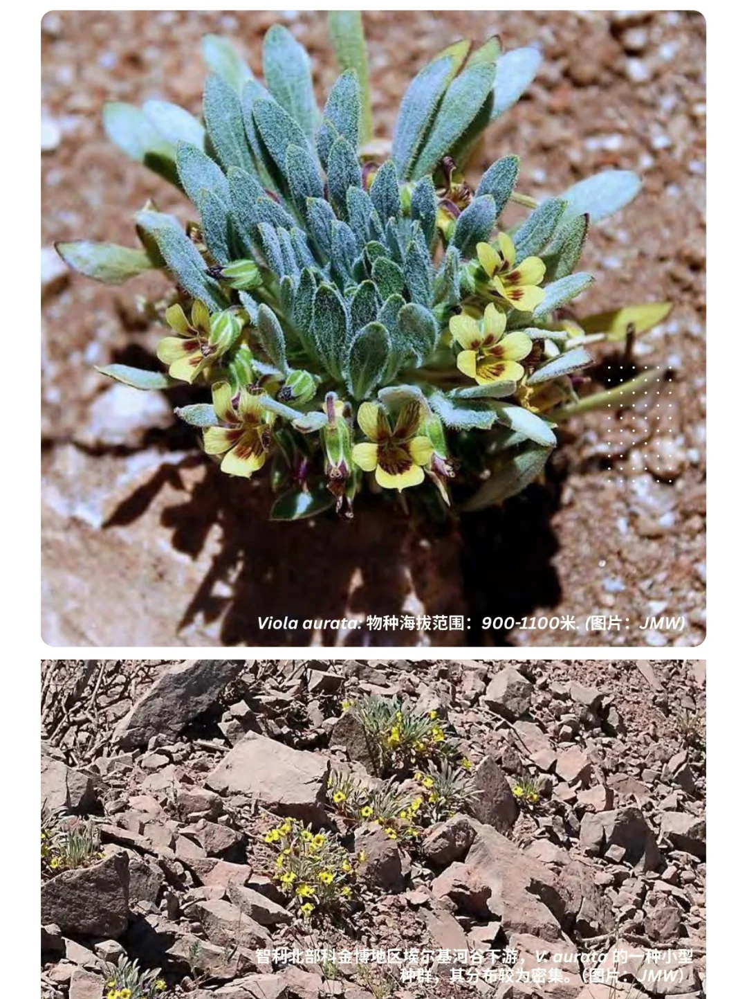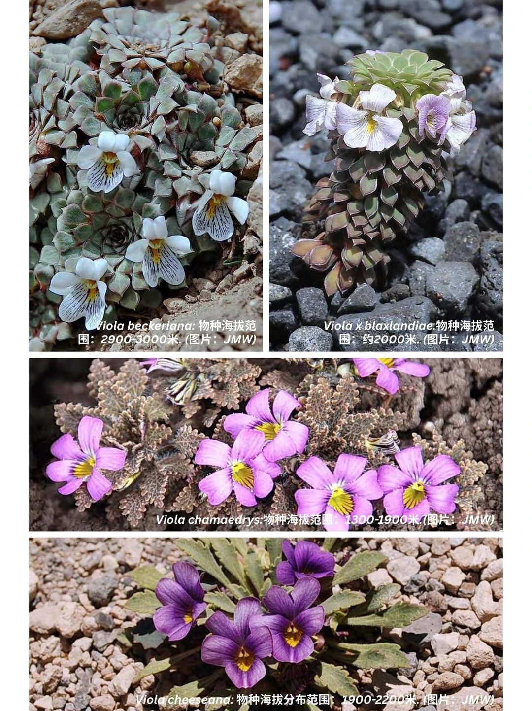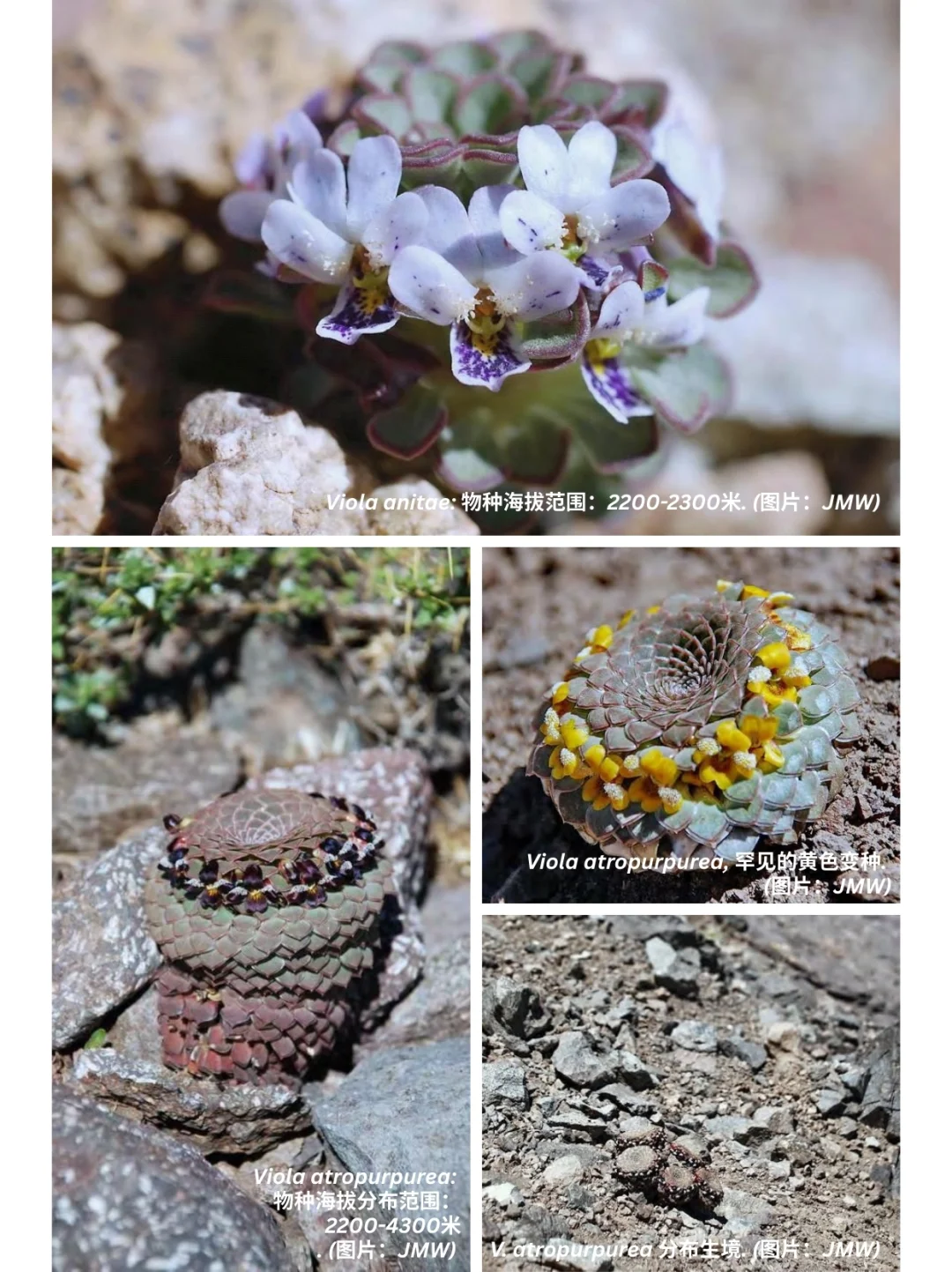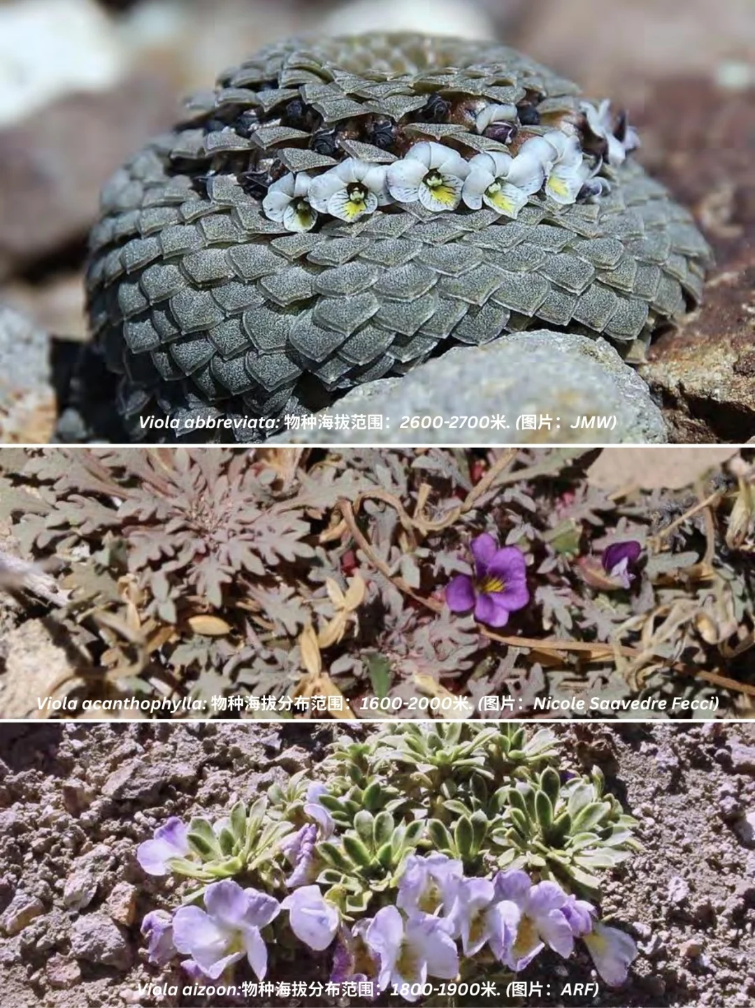 安第斯山脉 高山植物 堇菜科 堇菜属 Viola 莲座 该分类群与属内其他物种的分化时间可追溯至2900万年前。这一发现,结合这些物种对安第斯山脉抬升和更近期的地中海气候条件的特殊适应,解释了为何该属的许多分类单元在整体外观上,与其他所有堇菜属物种截然不同。