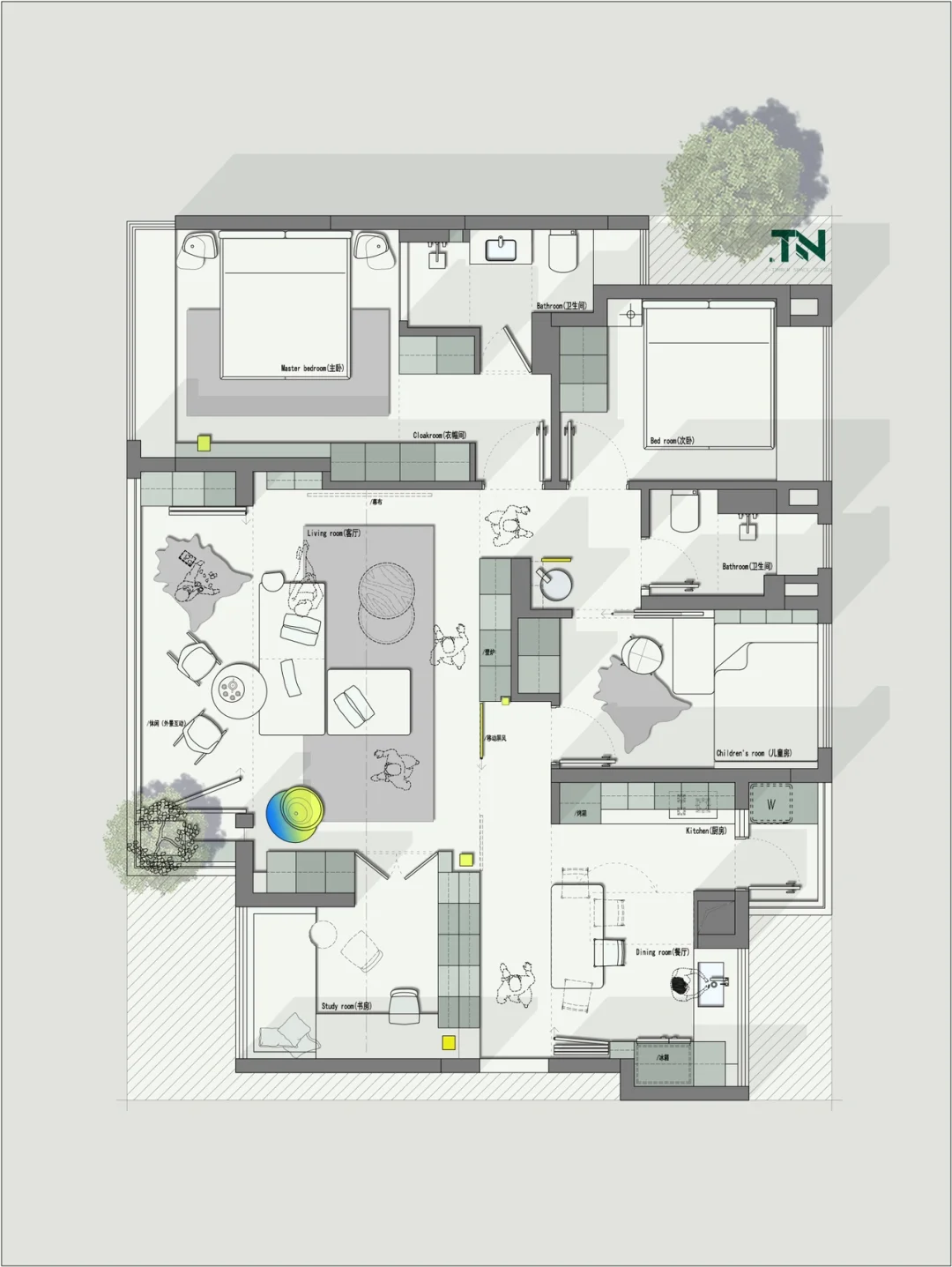 我必须说,半边公,半边私,才是一张美得超级有辨识度的户型,302㎡拥有独一无二的