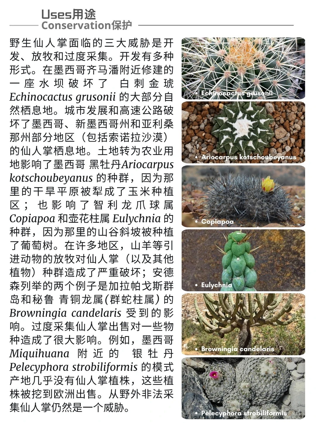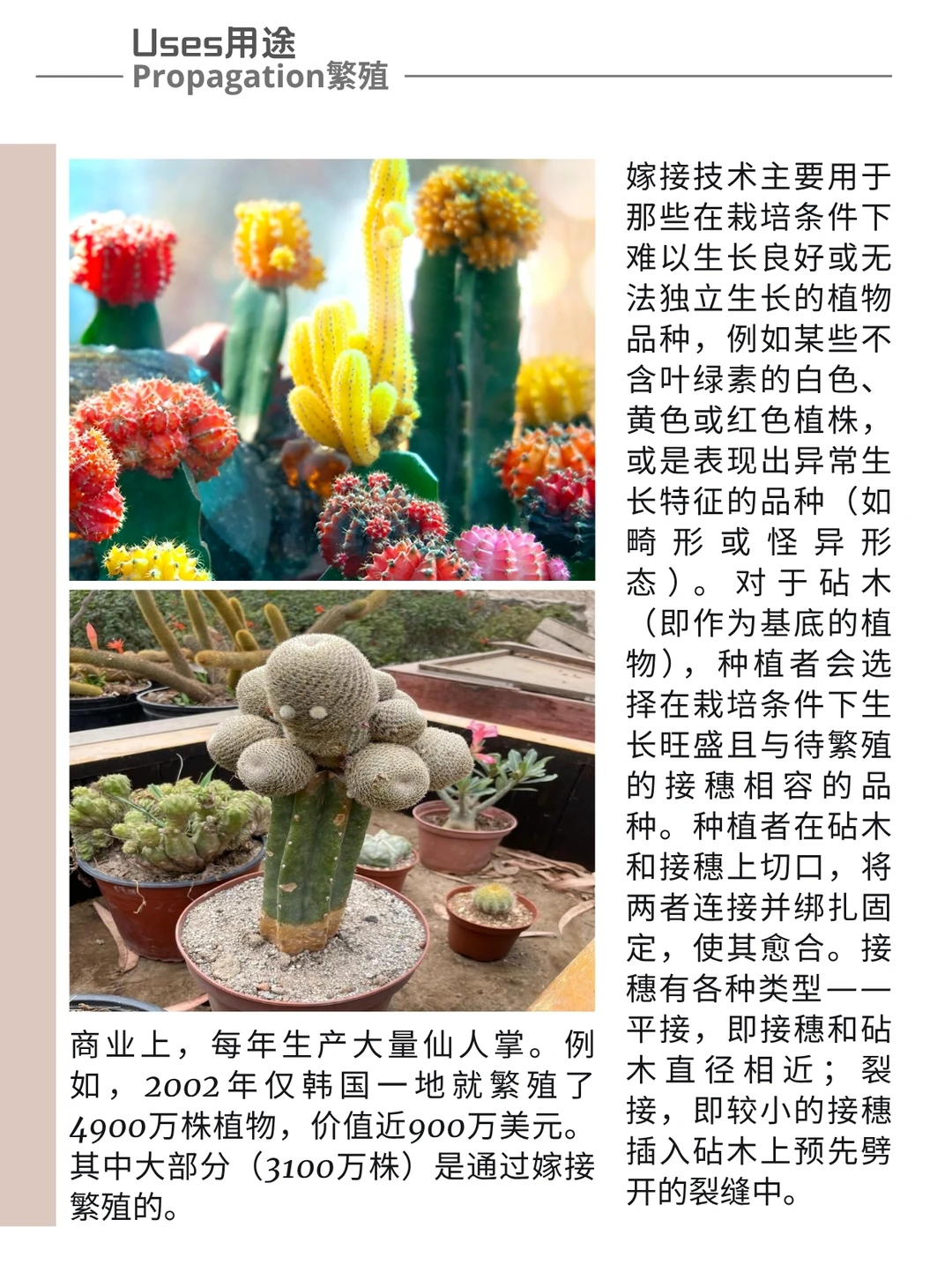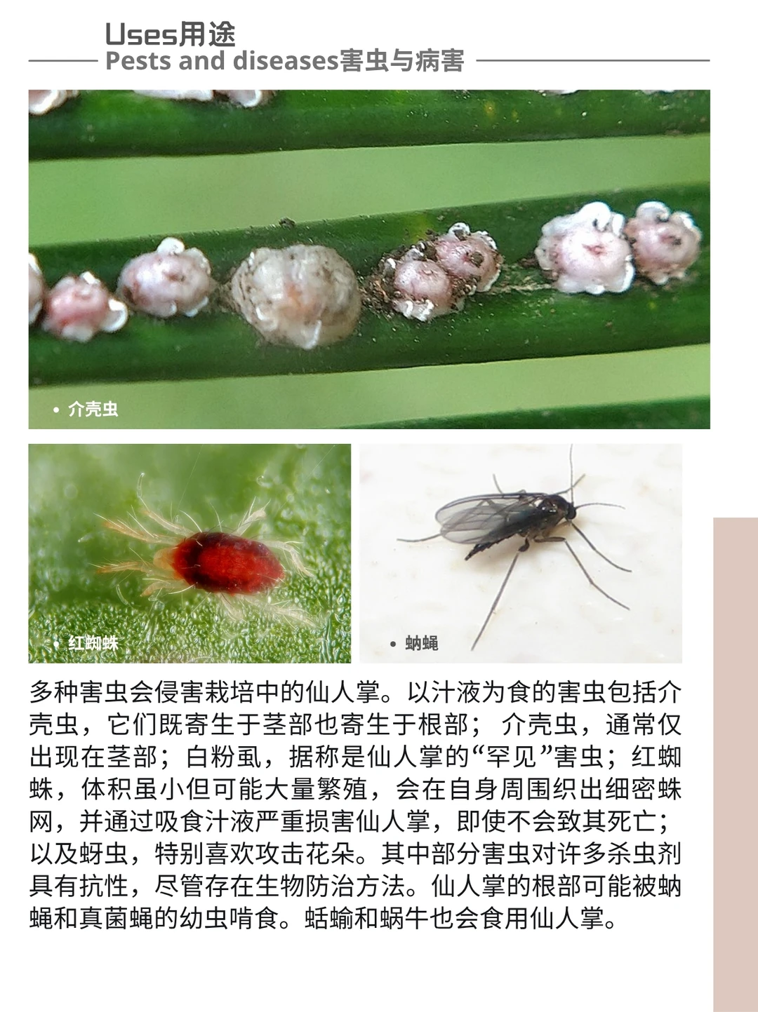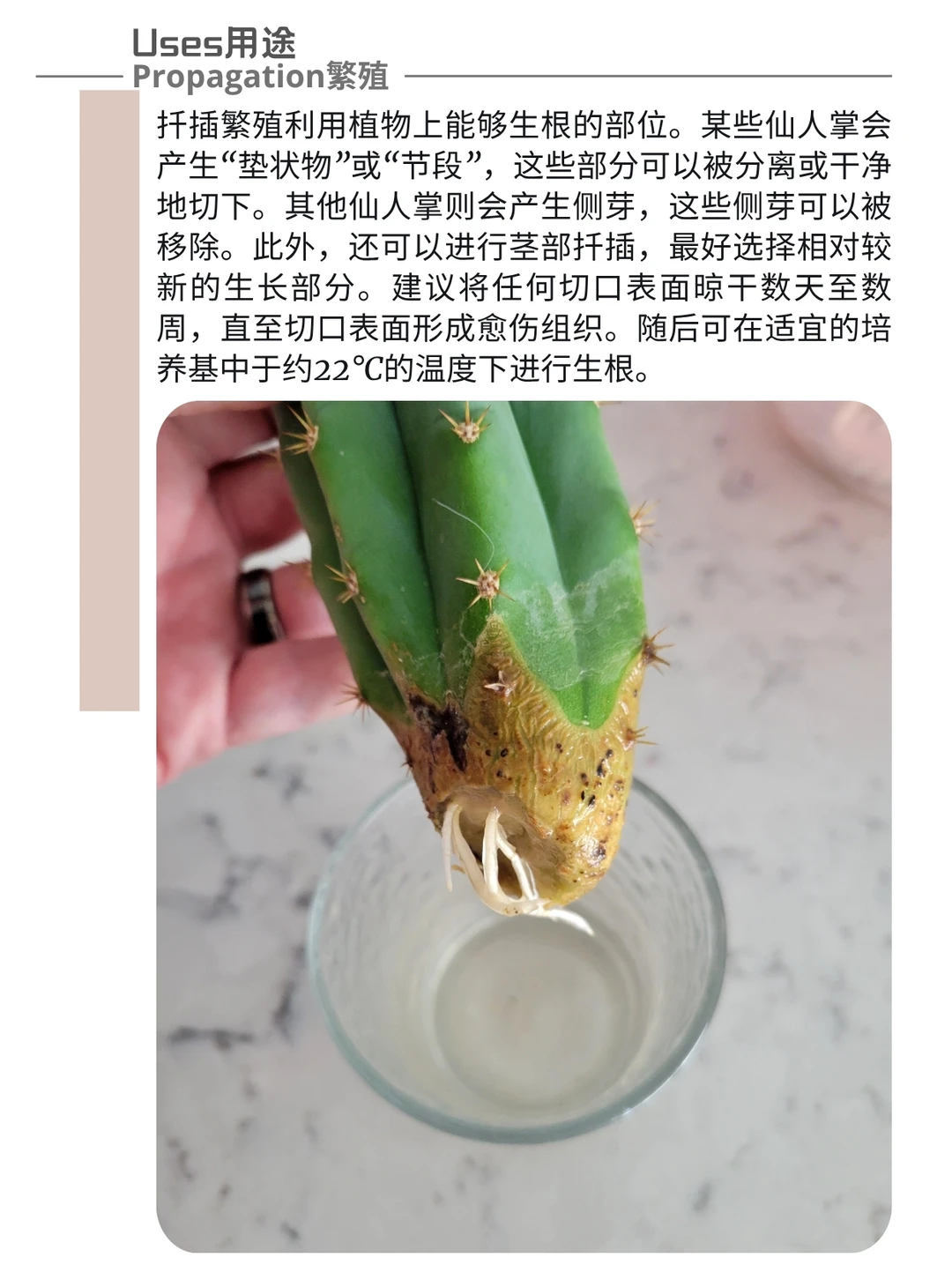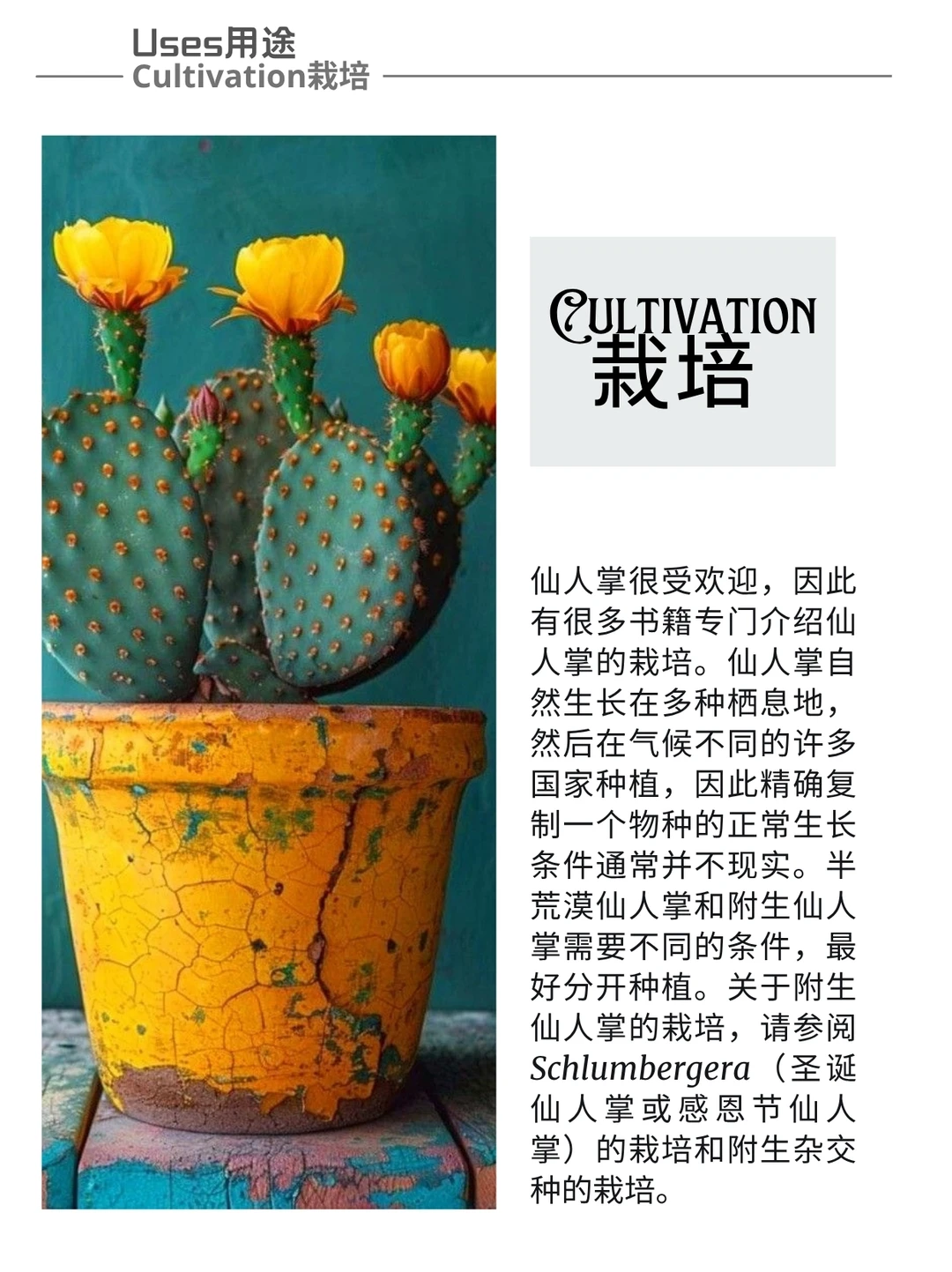 仙人掌科 \u00a0仙人掌栽培 \u00a0仙人掌繁殖 \u00a0仙人掌病虫害 仙人掌很受欢迎,因此有很多书籍专门介绍仙人掌的栽培。仙人掌自然生长在多种栖息地,然后在气候不同的许多国家种植,因此精确复制一个物种的正常生长条件通常并不现实。半荒漠仙人掌和附生仙人掌需要不同的条件,最好分开种植。关于附生仙人掌的栽培,请参阅 Schlumbergera(圣诞仙人掌或感恩节仙人掌)的栽培和附生杂交种的栽培。\n生长介质的作用是提供支撑,并储存水分、氧气和溶解的矿物质,为植物提供养分。对于仙人掌来说,人们普遍认为,空气含量高的开放式介质非常重要。罗杰-布朗(Roger Brown)建议使用两份商用无土栽培介质、一份水培粘土和一份粗浮石或珍珠岩的混合物,并添加蚯蚓粪。不过,也有一些人完全反对使用有机材料;Hecht 说仙人掌(附生植物除外)\"需要腐殖质含量低或不含腐殖质的土壤\",并建议将粗沙作为生长介质的基础。\n半荒漠仙人掌需要精心浇水。很难给出一般性建议,因为浇水的频率取决于仙人掌的生长地点、生长介质的性质以及仙人掌的原始栖息地。布朗说,\"不及时浇水 \"造成的仙人掌损失比任何其他原因造成的损失都多,即使在冬季休眠期,仙人掌也需要浇水。[另一个问题是水的硬度;如果必须使用硬水,建议定期重新上盆,以避免盐分积累。一般建议是,在生长季节,应让仙人掌在两次彻底浇水之间干透。水表有助于确定土壤何时干透。\n虽然半荒漠仙人掌在野外可能会受到强光照射,但在夏季温室的较强光照和较高温度下,它们可能仍然需要一些遮光物。不建议让温度升至 32 °C 以上。冬季最低温度要求在很大程度上取决于仙人掌的种类。对于混合采集的仙人掌,通常建议最低温度为 5 °C至 10 °C,对寒冷敏感的仙人掌属(如 Melocactus 和 Discocactus)除外。有些仙人掌,尤其是安第斯山脉高处的仙人掌,在保持干燥的情况下完全耐寒(例如,Rebutia minuscula 在栽培过程中可在低至 -9 °C的温度下存活),在寒冷的环境中可能会更好地开花。