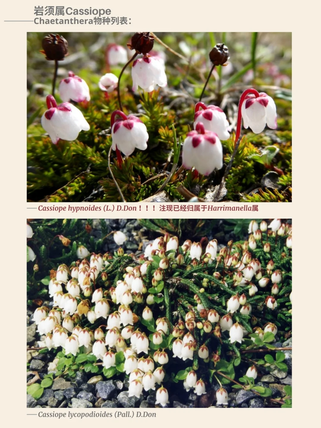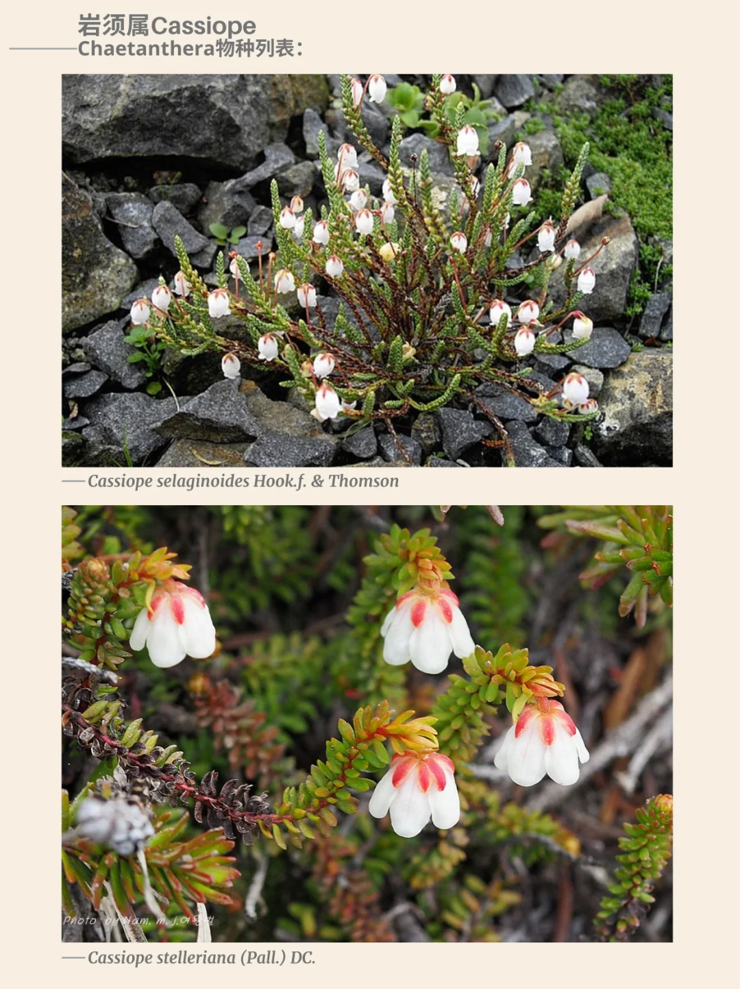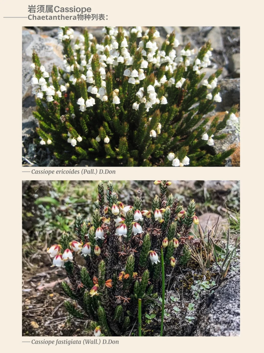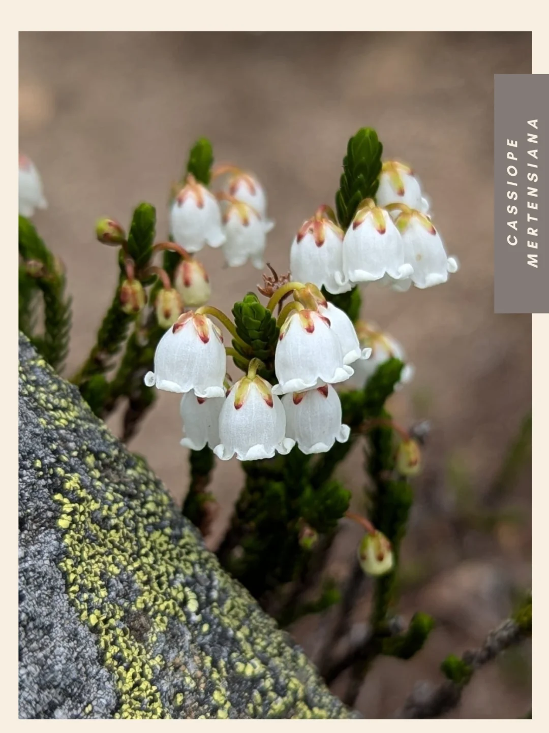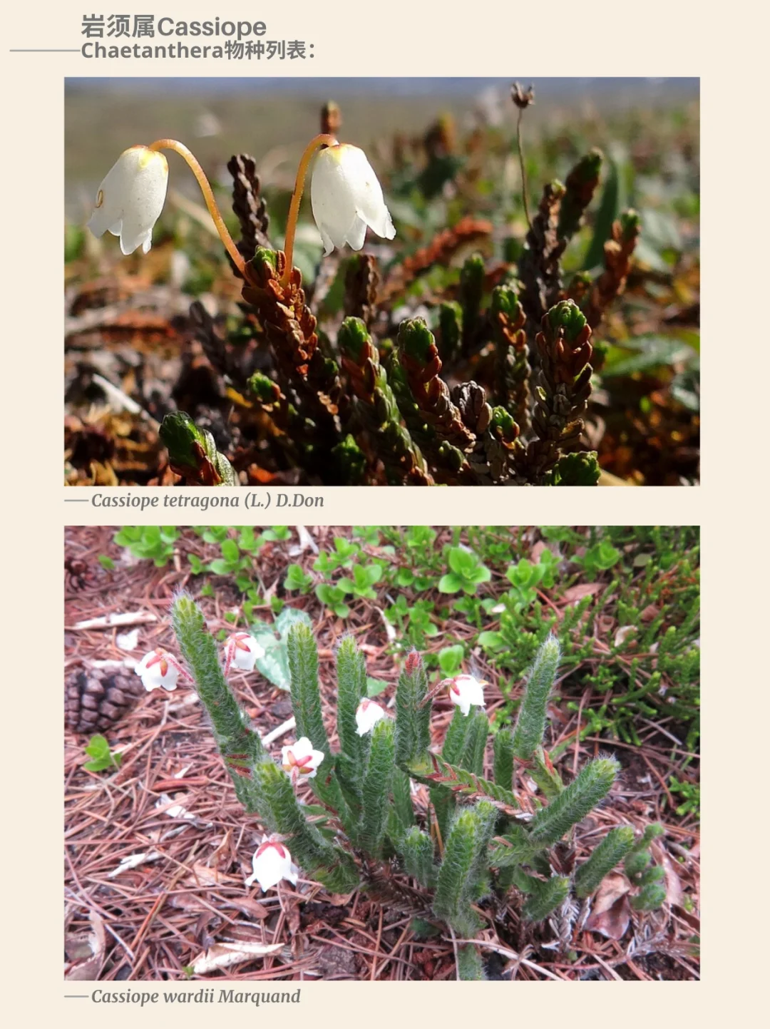 杜鹃花科 岩须属 Cassiope 西部苔藓石南 北美西部 阿拉斯加 加利福尼亚 杜鹃花 山野草 西部苔藓石南Cassiope mertensiana,是一种杜鹃花科Ericaceae岩须属Cassiope的开花植物,俗称西部苔藓石南或白山石南。这种杜鹃花原产于北美西部的亚高山地区,分布范围从阿拉斯加延伸至加利福尼亚山脉。它是一种小型分枝灌木,沿地面及岩缝形成片状丛生。