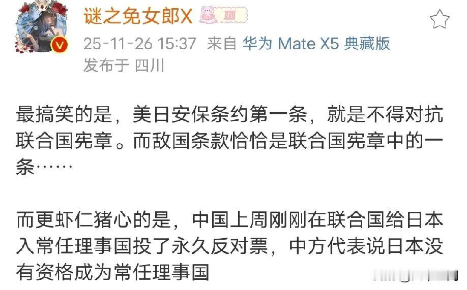 郭正亮说敌国条款是大陆的高招,因为美日安保条约不可以违背联合国宪章,就像普通法不能违背宪法一个道理,而且美日安保条约第一条也写明了不能违背联合国宪章!所以我们如果依照联合国敌国条款出兵日本的话,美国是无法依照美日安保条约出兵帮助日本,如果美国依照美日安保条约出兵,那就是等同违反联合国宪章,等同于侵略,那我们就可以直接干它了!