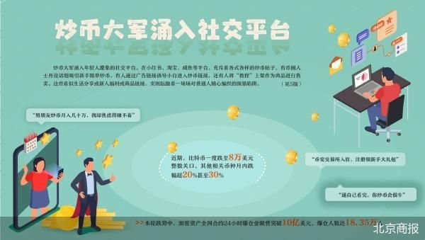 炒币大军涌入年轻人麇集的社交平台。“币安交易所入驻,注册领新手大礼包”“逼自己看完,你炒币会很牛”“男朋友炒币月入几十万,我却焦虑得睡不着”“有一个最笨的炒币办法,几乎100%盈利”……