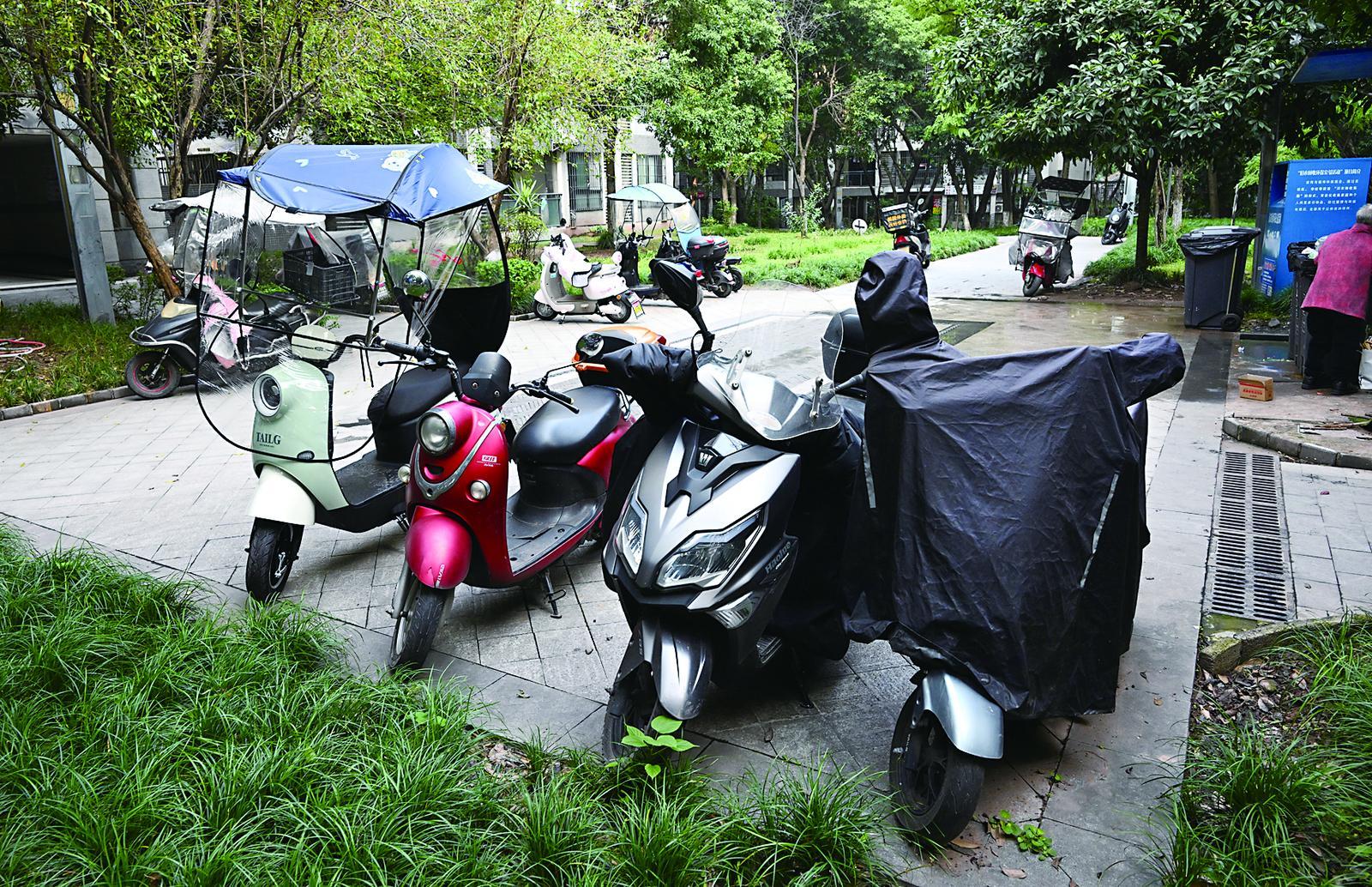 物管办公室的工作人员介绍,曦园柳镇小区三期共有80多栋居民楼,其中9栋为高层,其余为多层住宅,共有居民3000多户,小区2012年左右入住。由于当初修建时,没有过多考虑到摩托车停车的问题,随着最近几年电动摩托车的爆发式增长,小区内使用电动摩托车的业主越来越多。这些摩托车不仅经常乱停乱放,占用小区的消防通道和人行道,还有部分业主为了方便摩托车充电,私自从楼上自家窗户中拉线到楼下,为自己的摩托车“飞线充电”,十分危险。