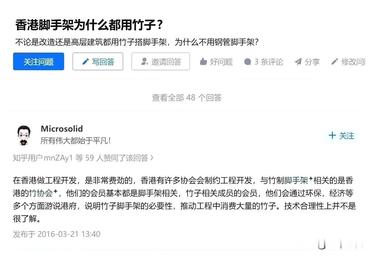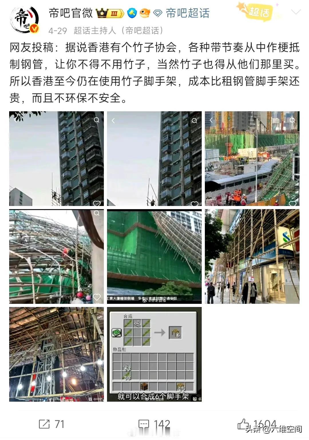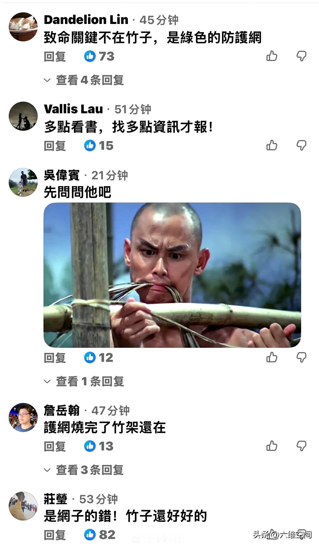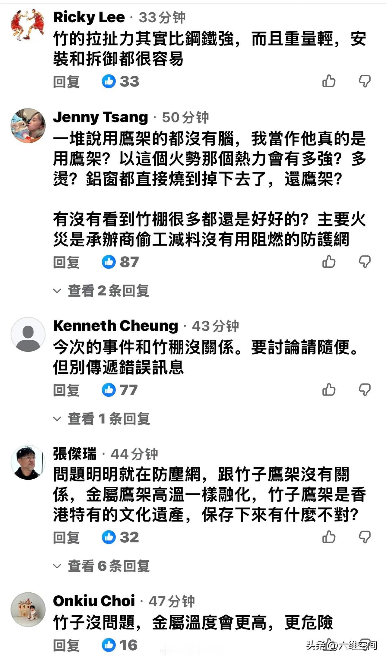 香港网友不认为是因为竹子脚手架的问题,而且那个棚网,甚至在给竹子脚手架辩护,觉得竹子更好用,甚至觉得竹子脚手架是香港特有文化遗产,要保存下来!不得不佩服香港的竹子协会宣传的能力,让香港人完全接受了它们的那套包装,竹子脚手架到底文化在哪里?真的想不通,当然大火肯定是多方面的原因,但是竹子脚手架换成钢管脚手架的就这么难吗?其实经历越多,越知道我们大陆或者说内地这边的大众,其实思想是更开阔的,而且对于创新和新事物还是比较包容的!