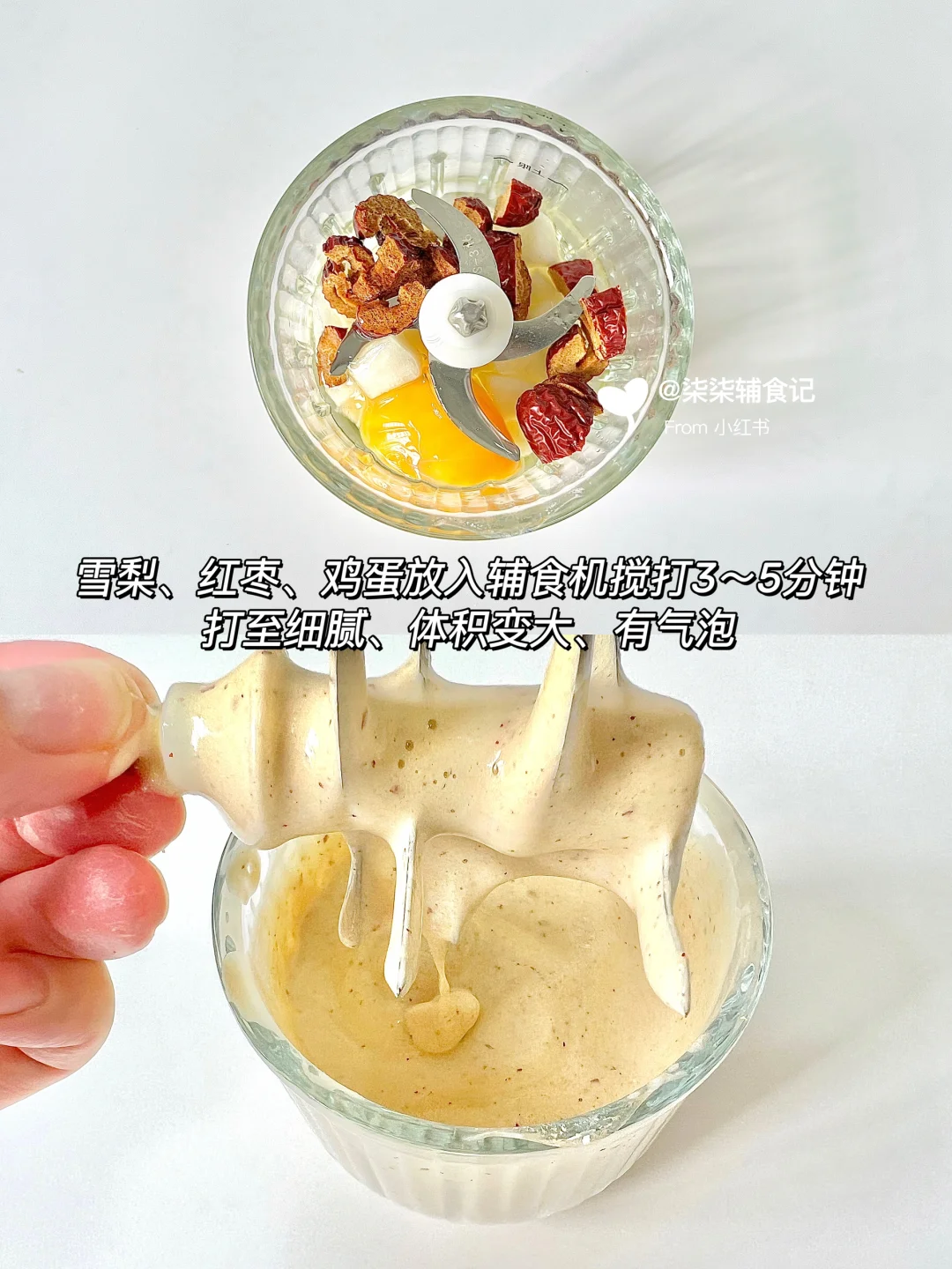 ▫️红枣、雪梨、鸡蛋一起放入辅食机,打打停停3分钟以上