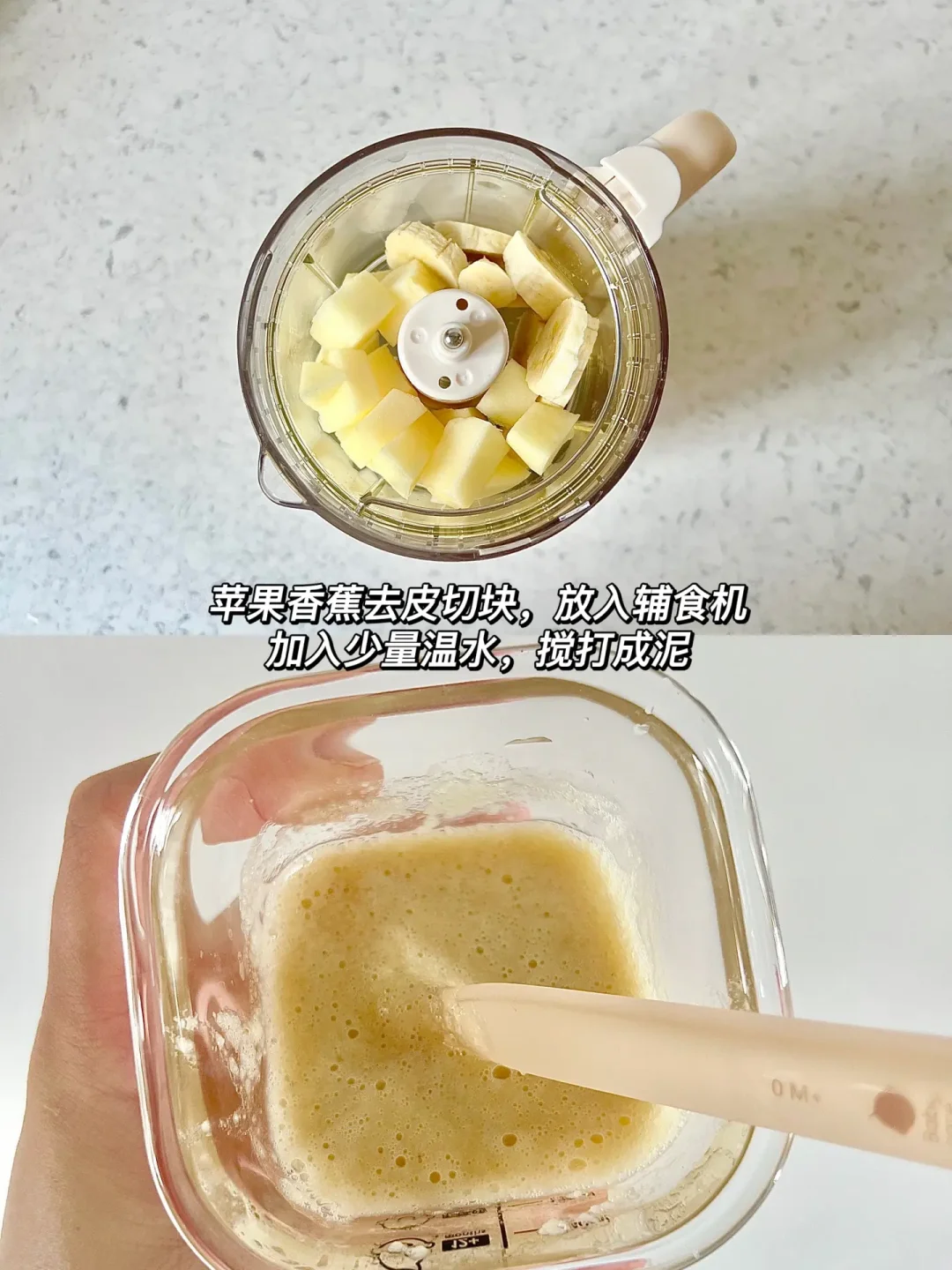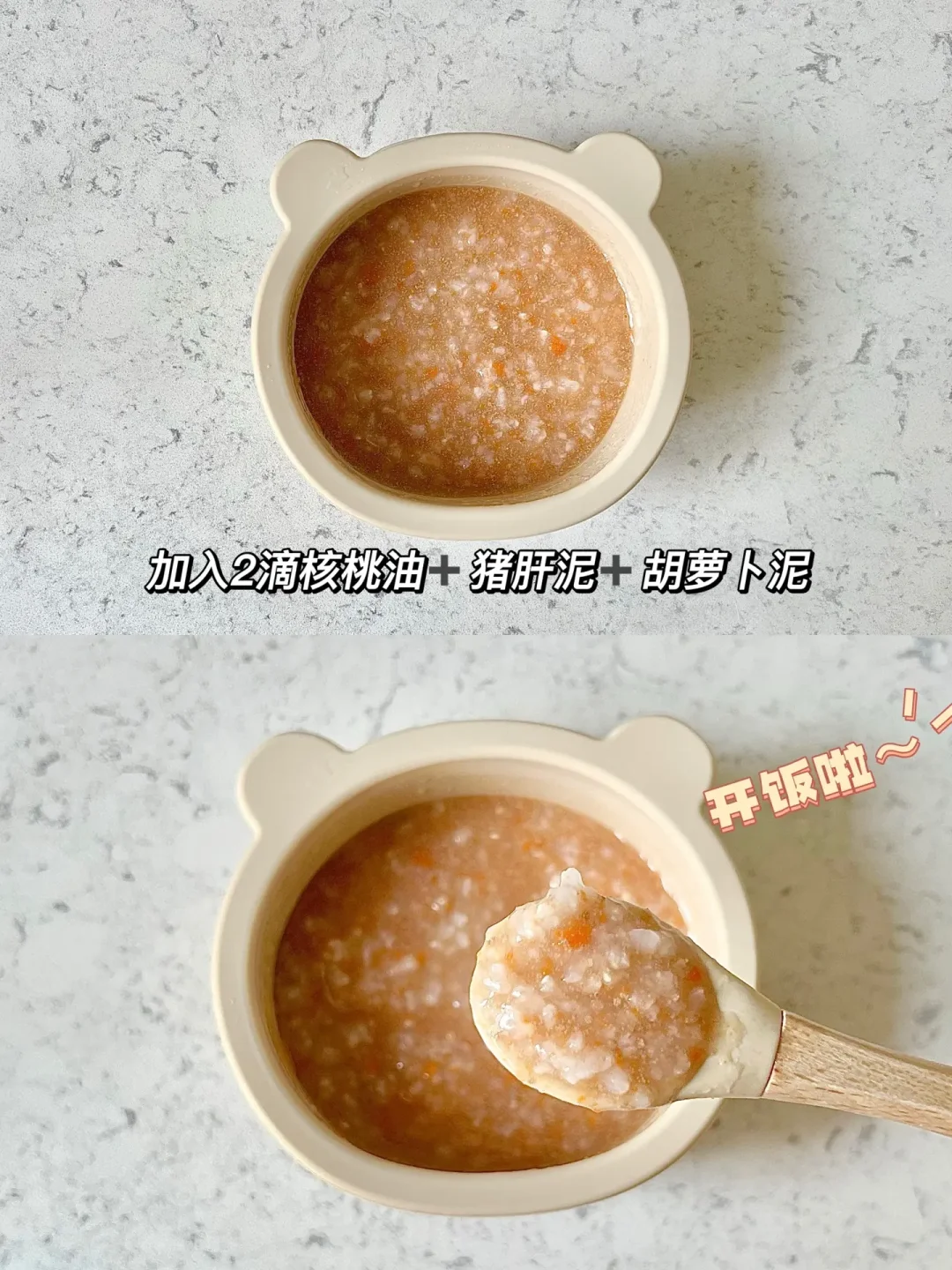 👧:7个月➕2天 🥣:胚芽米➕核桃油➕胡萝卜➕猪肝泥 ⏰:上午10:30 📝:10g胚芽米➕2滴核桃油➕胡萝卜泥➕猪肝泥 🍽️:下午加餐:苹果香蕉泥🍎🍌 猪肝泥第三天~顺利排敏啦! 今天柒柒早上还没六点就醒了😭奶喝的比较早,中午也提早吃辅食,吃到一半开始抢勺子自己往嘴里送哈哈哈[大笑R][大笑R]看来不久之后柒柒可以自主吃饭啦~[赞R]最后还剩了一点点没吃完,吃完喝了60ml水。 下午加餐苹果香蕉泥🍎🍌。 ⚠️食材大小根据宝宝的咀嚼能力处理。