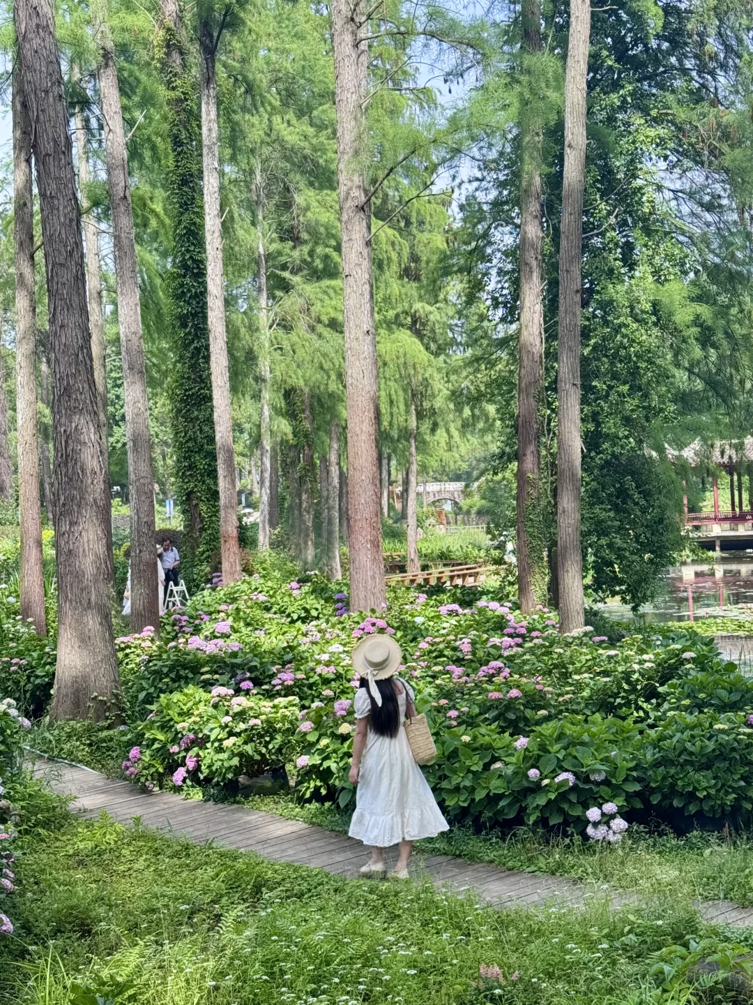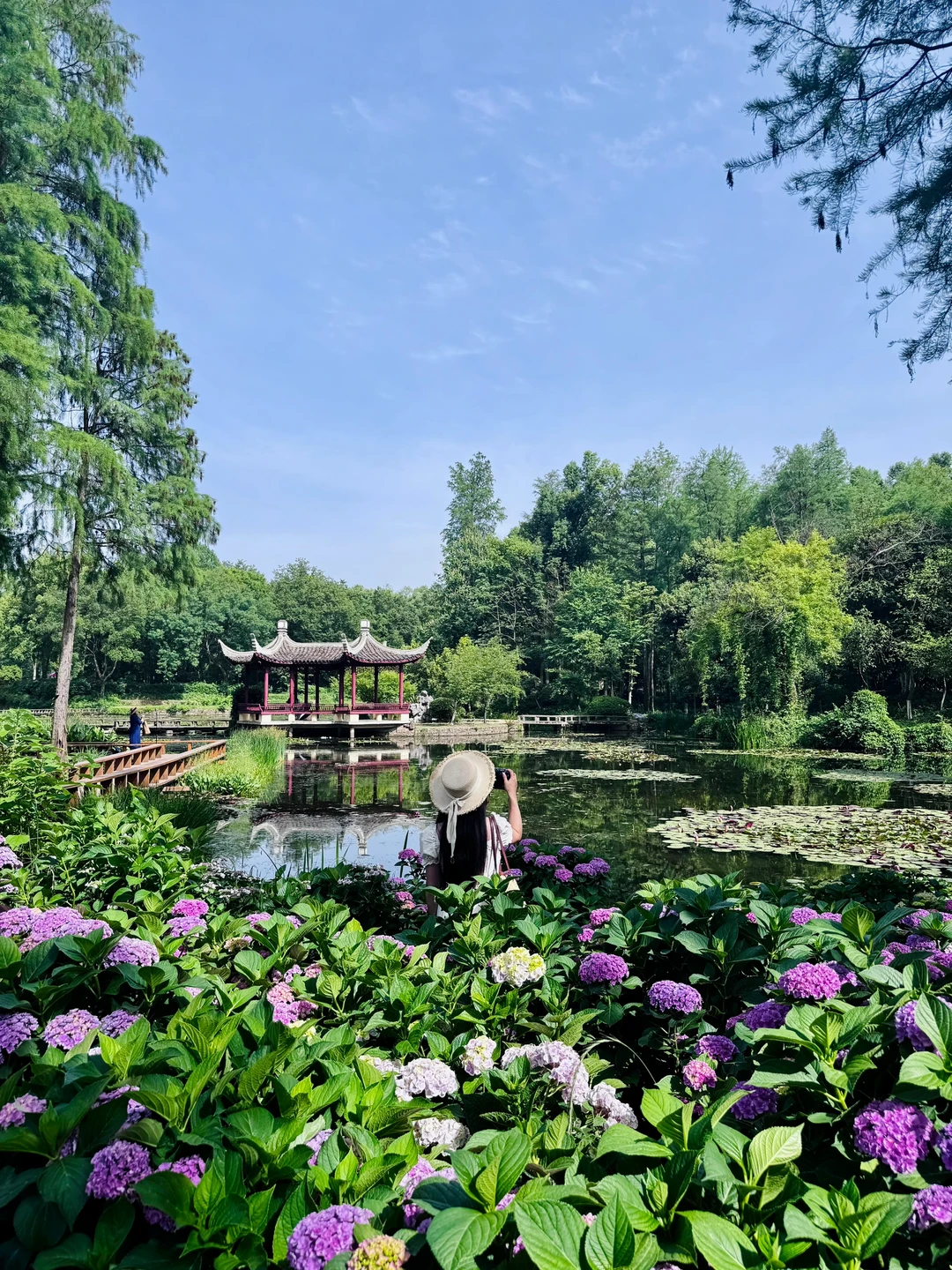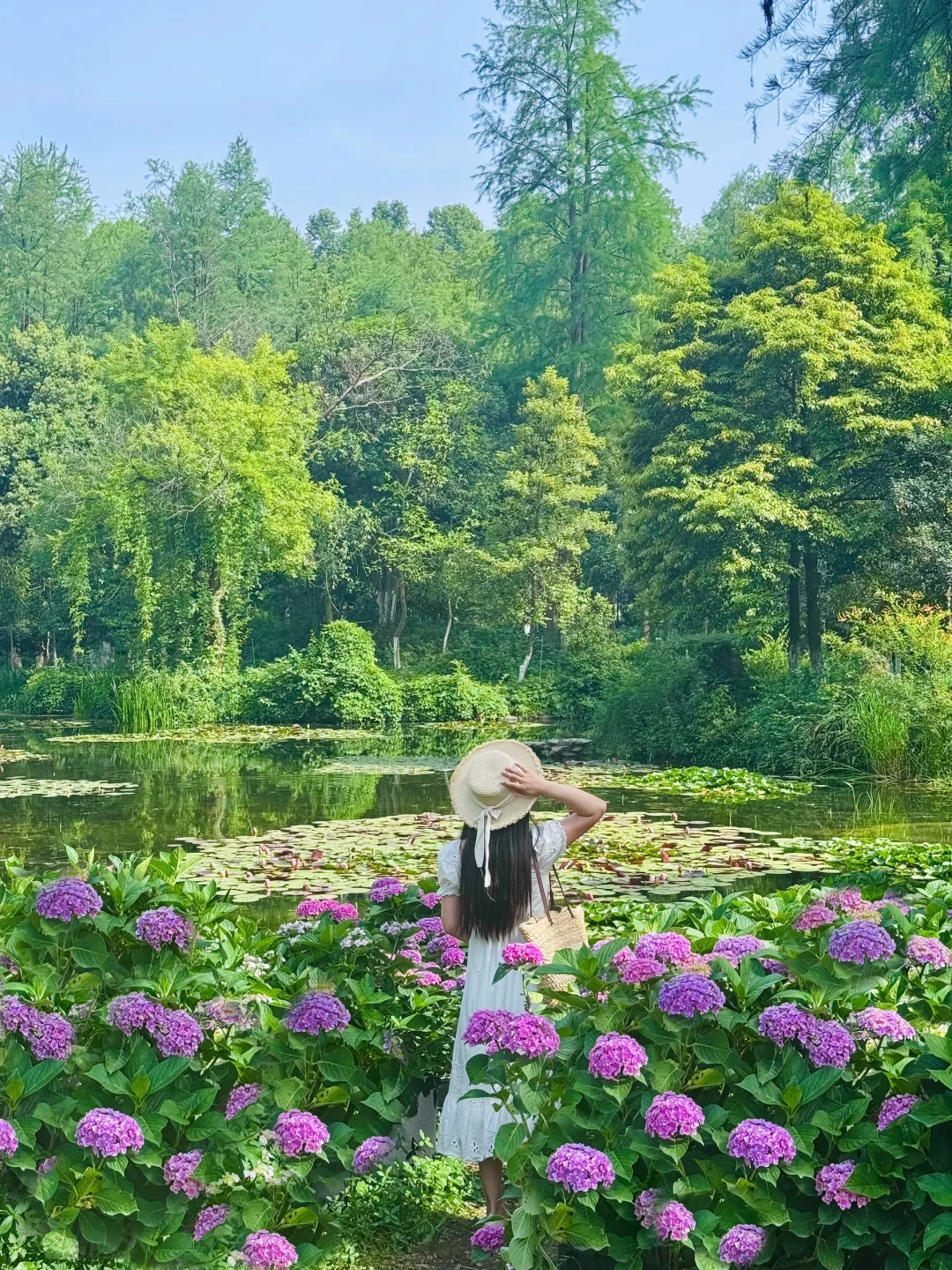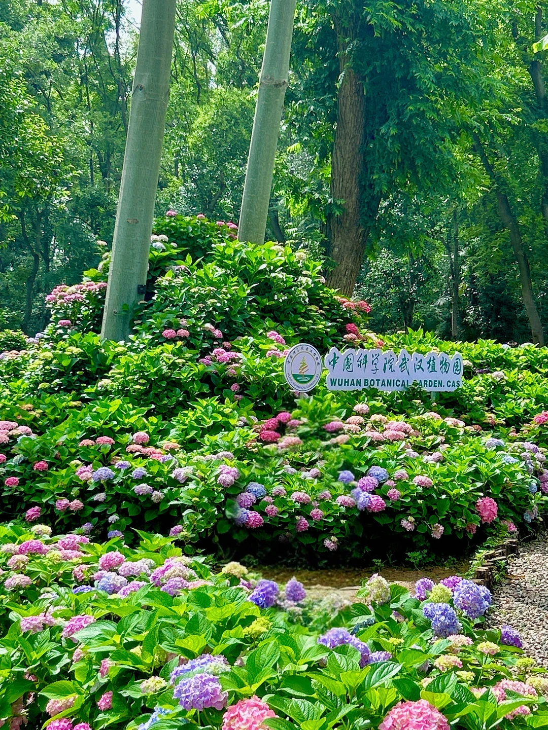 武汉是个美丽的城市 一年四季都有不一样的美 初夏的武汉已经开满了无尽夏🌸 仿佛走进了属于自己的莫奈花园 🗺️进园区后右手边步行几分钟就能看见 - 📷拍照攻略 ✅花镜大道:被无尽夏包围的红房、凉亭、栈道、湖心睡莲 ✅红房子对面:邻湖站在花路中间,可以拍出莫奈花园的感觉 ✅湖畔林下:哈哈镜、相框、“蒜鸟”超多可爱打卡点 🌟Tips: 上午11:00前或下午15:30后,光线柔和和你出片 穿浅色系,白色裙子超仙 📍武汉植物园 🎫35/人,年卡🆓