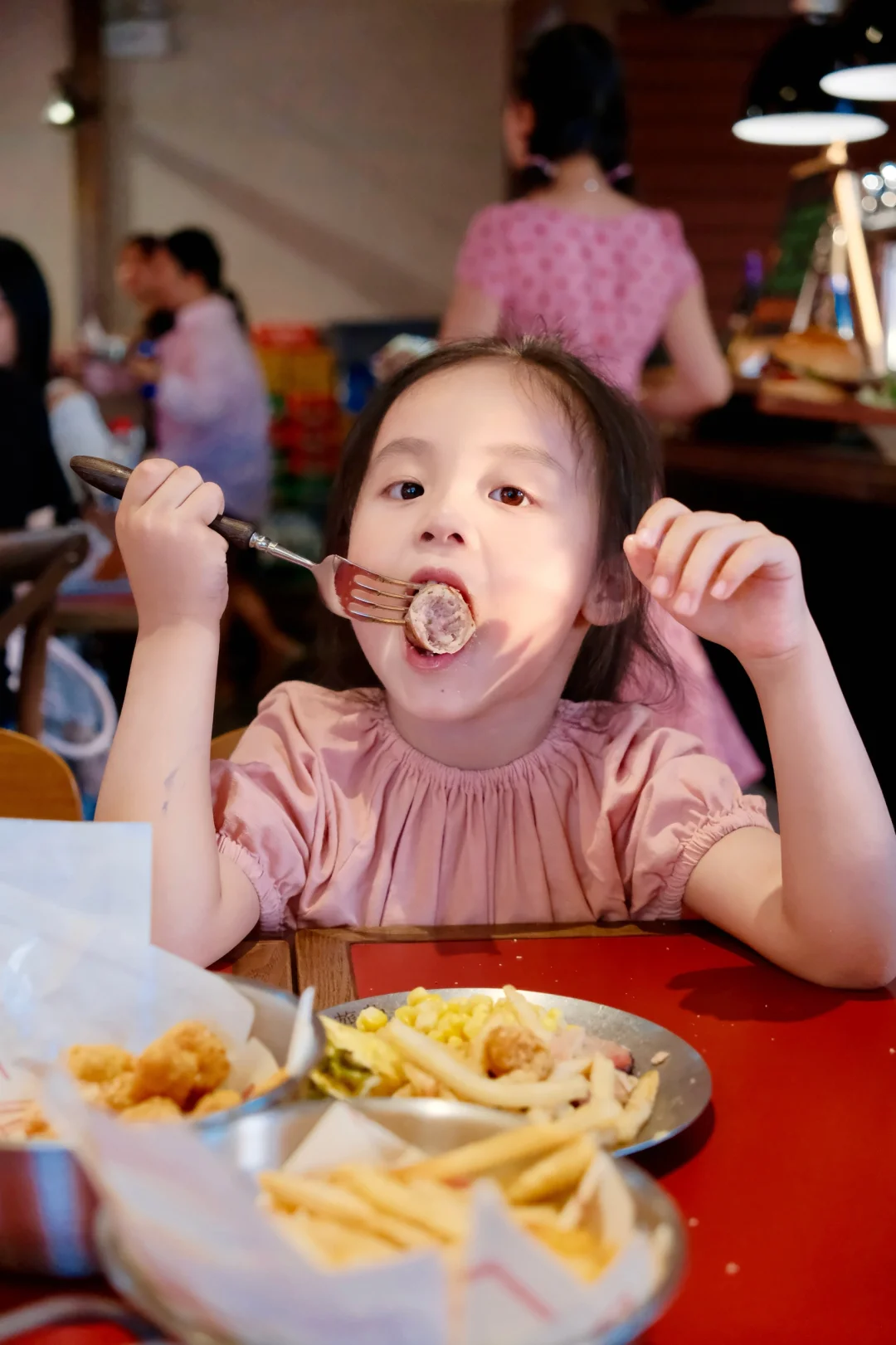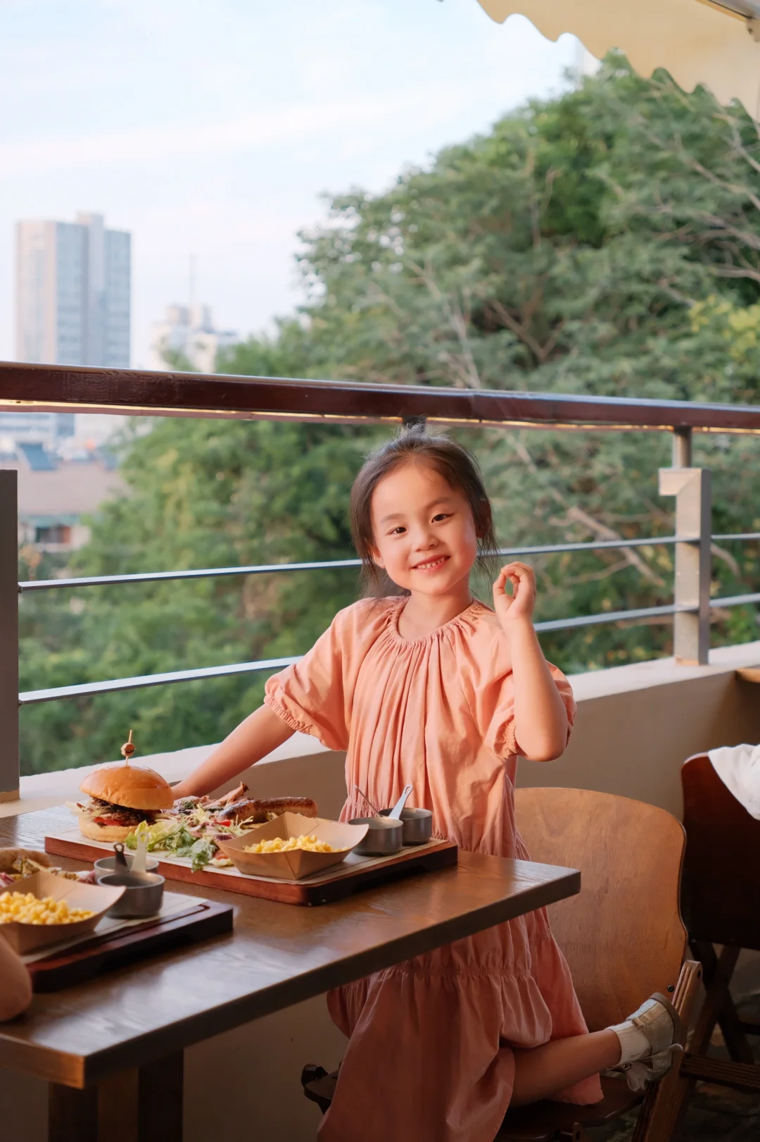 遛累了直接在山顶的梧桐美式烤肉吃了晚餐,有孩子们爱的汉堡🍔薯条🍟牛排,吃的叫一个开心🥳