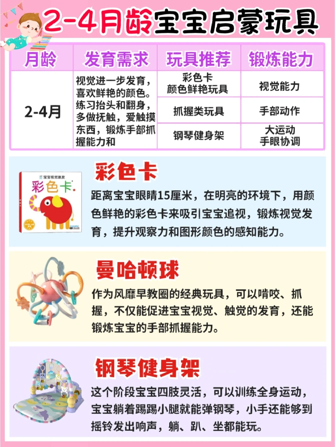 玩具:彩色卡、曼哈顿球、健身钢琴架