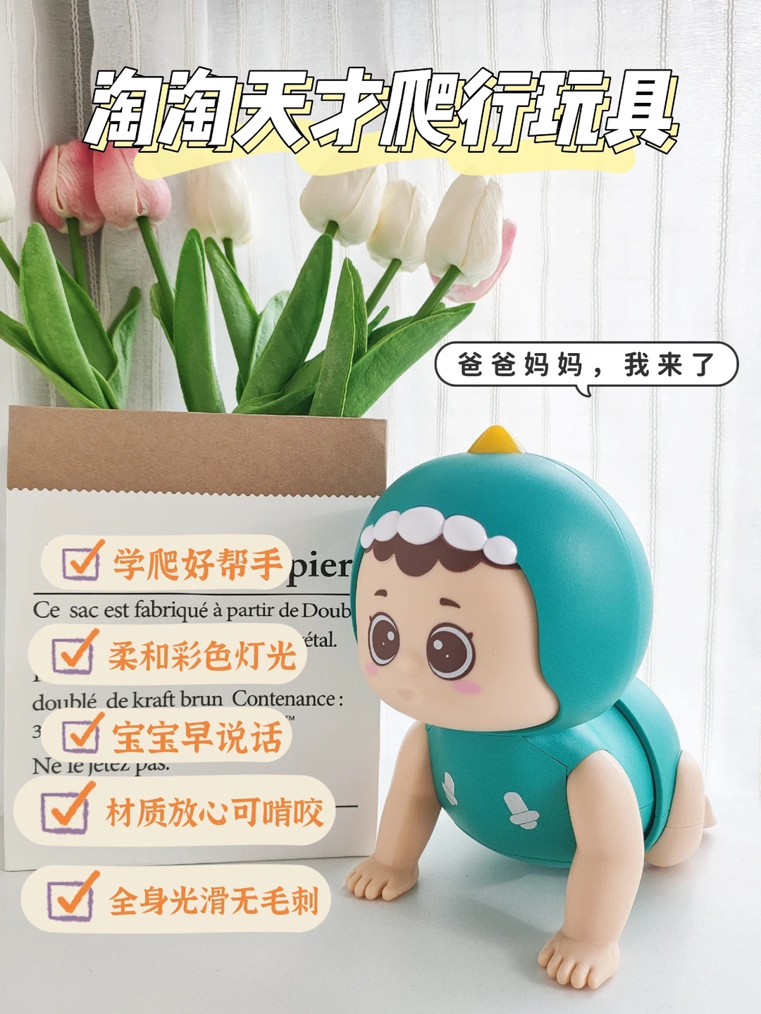 🔺准备一款爬行玩具(我家宝宝选的是淘淘天才爬行玩具,造型可爱)