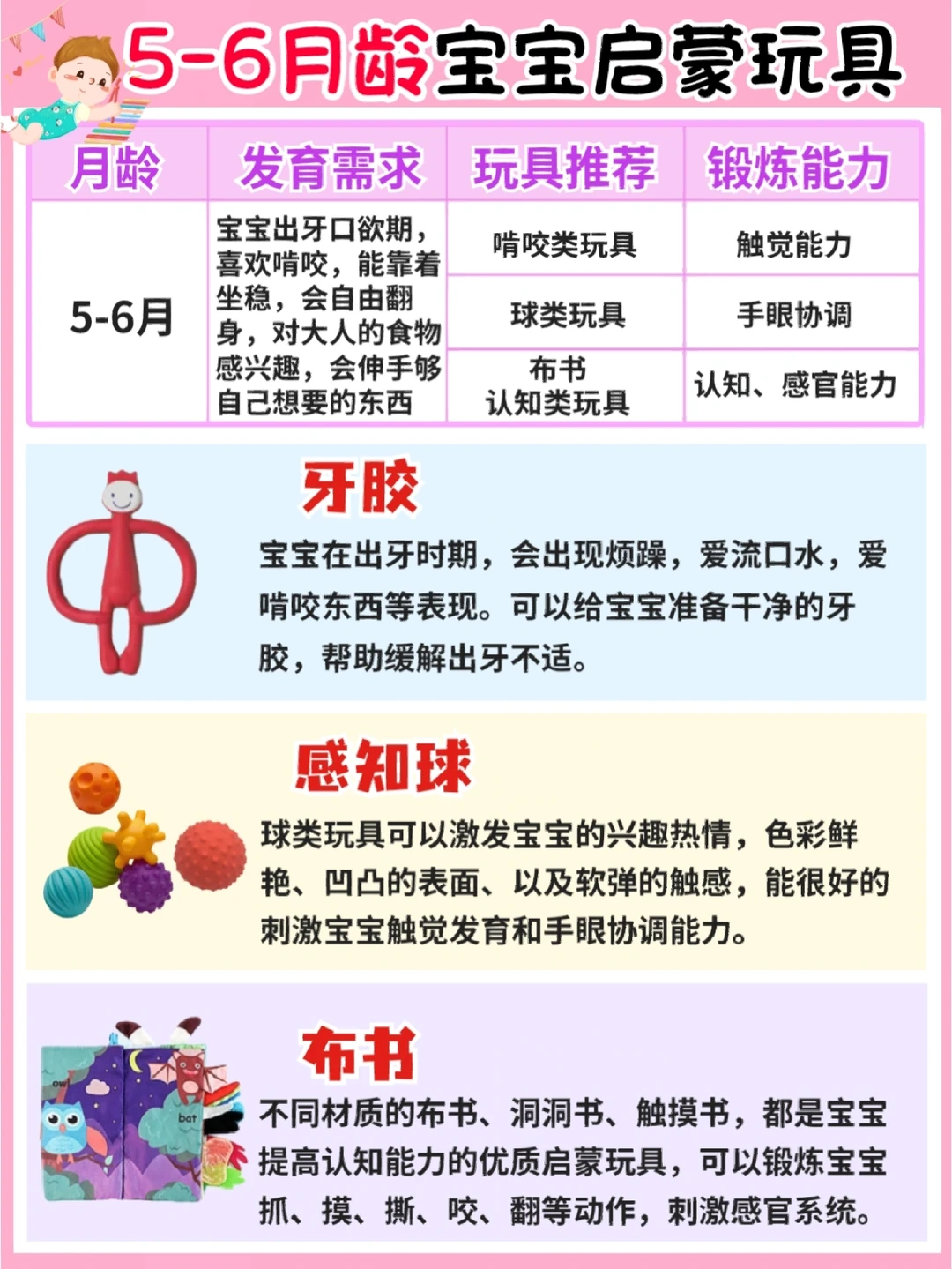 玩具:牙胶、感知球、布书