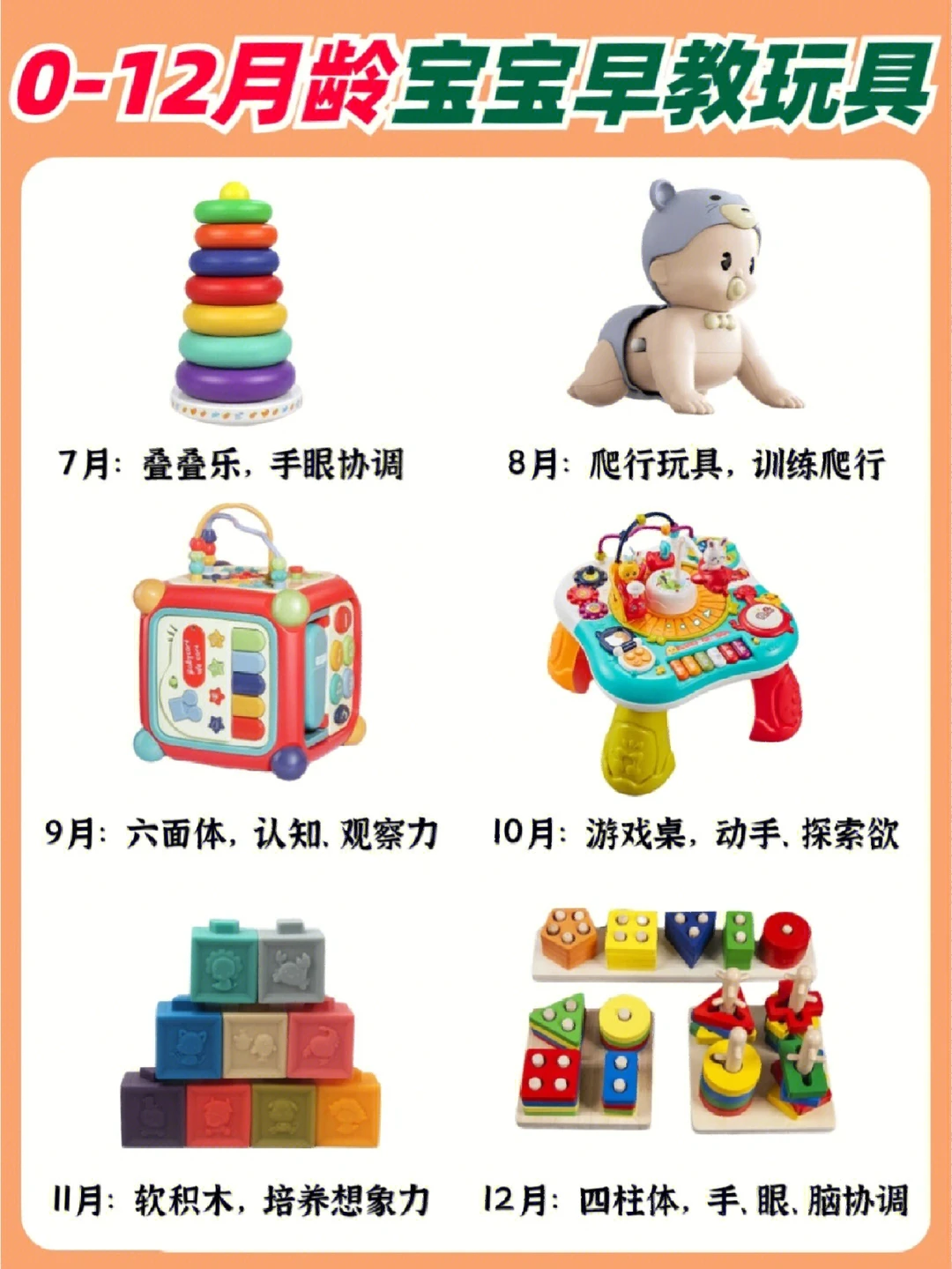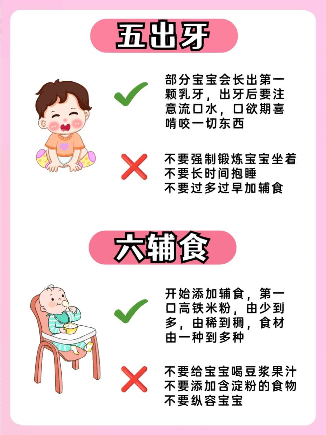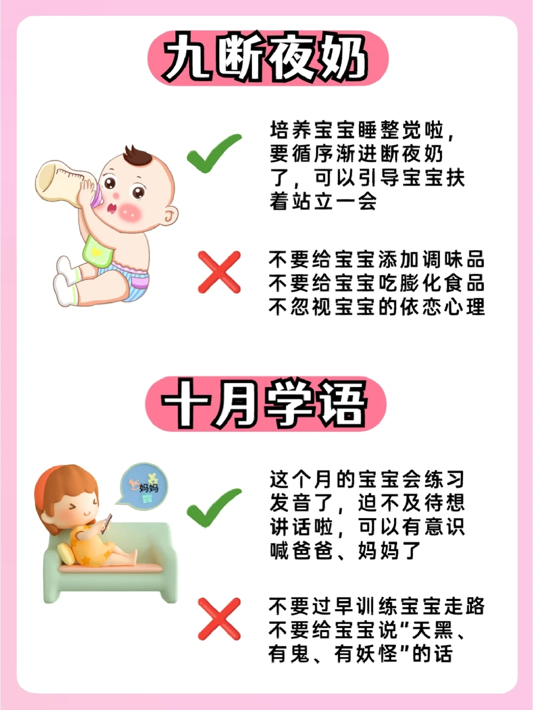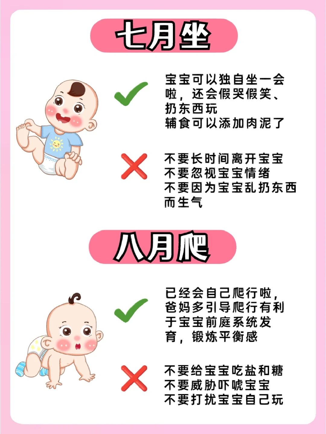 六辅食,七月坐,八月爬,九断夜奶,