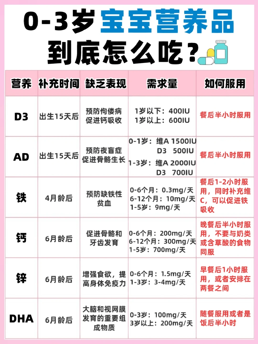 好啦!还不知道孩子营养品该如何补充的话,只要对照表格看,照着做不会错哦!