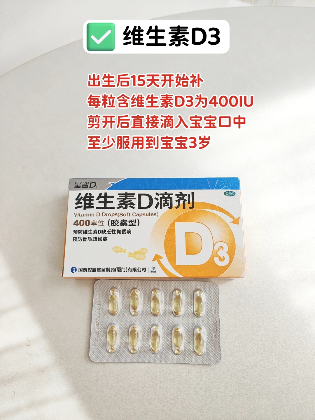 ✅维生素AD:出生15天后补(可与D3交替隔天吃,不要同时吃)
