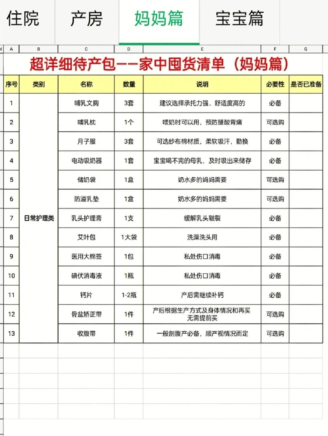 1. 所有物品帮大家做了归类,更方便孕妈准备物品。