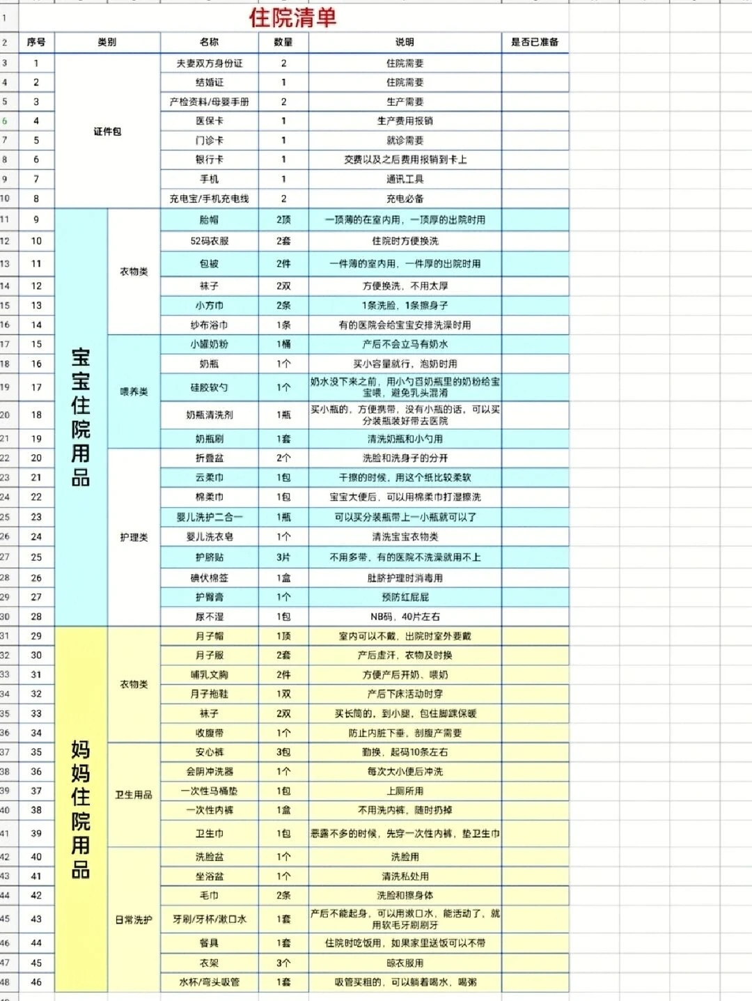 💟吐血整理,应该是zuizuizui齐全实用的待产包清单啦❗️❗️❗️