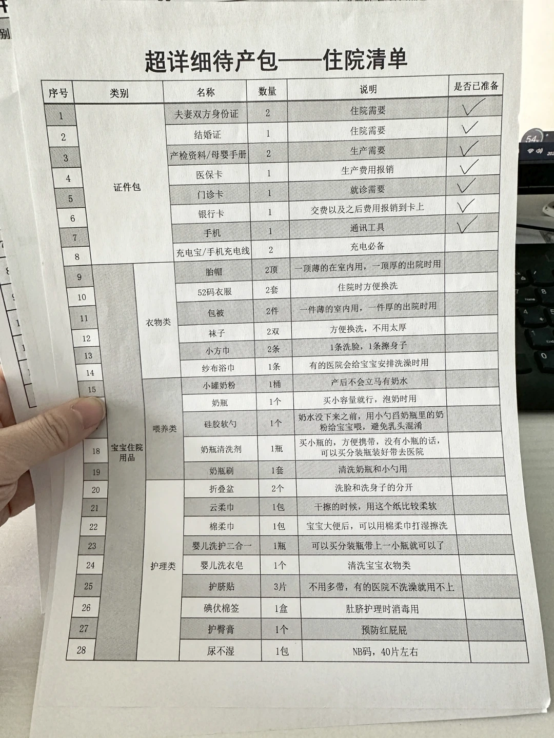 打印成纸质版,更方便盘点,不会乱,去医🏥院的时候有清单也可以查看用品放在哪个包裹,不然人一多,找不到东西,很慌乱。