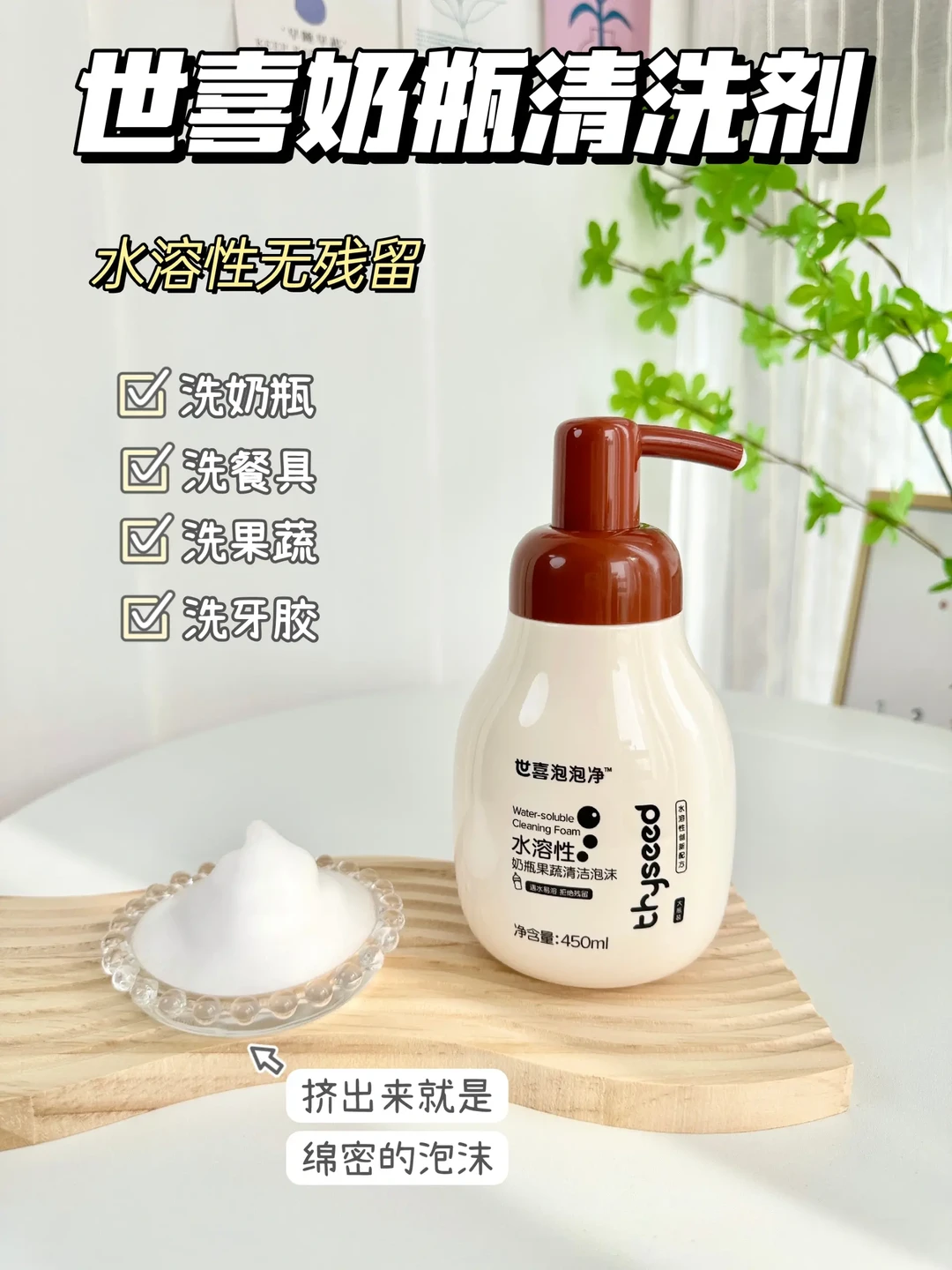 选择好冲洗,不会有残留,洗后奶瓶不假滑!水溶性泡沫质地的更为容易冲洗!