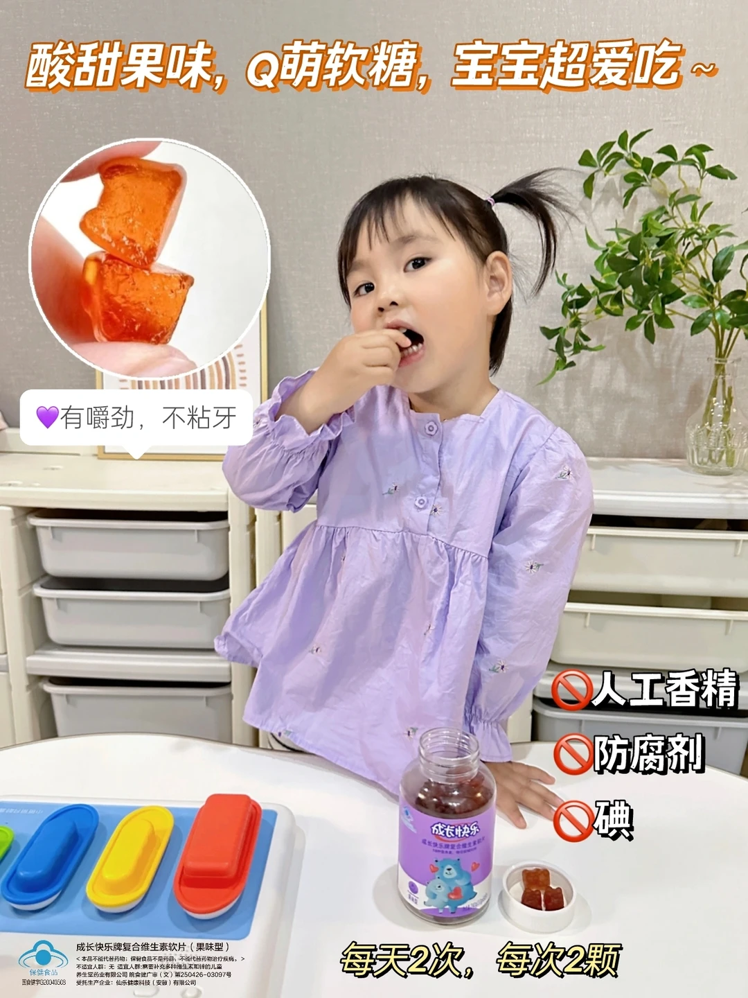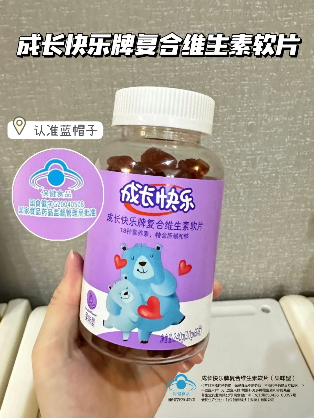 📙通过做功课,我确定了,一方面要食补,一方面得给孩子吃营养素,对比了一圈,市面上众多的儿童复合维生素里,只有成长快乐复合维生素软片符合我的要求: