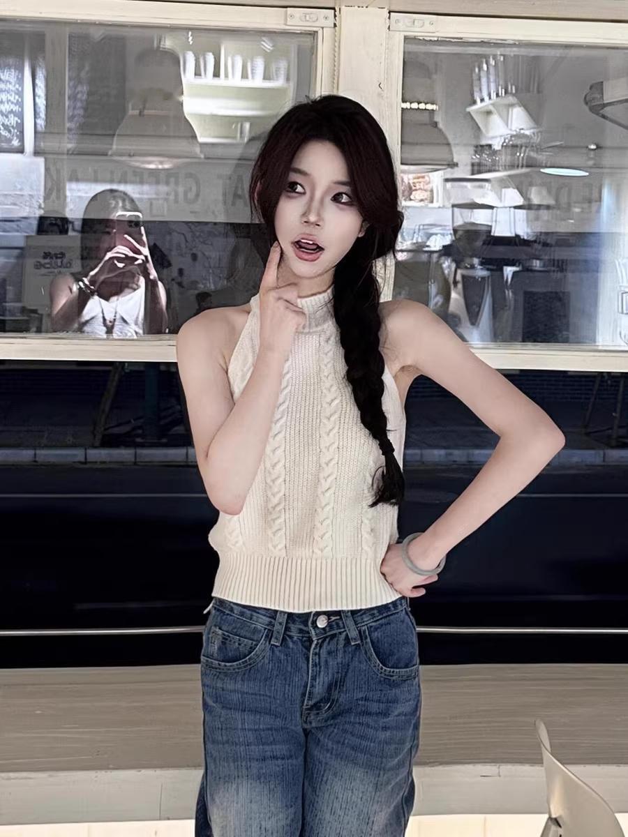 美女笑容太治愈了!她身着浅灰无袖针织连衣裙,竖纹肌理勾勒出优雅曲线,简约版型衬得