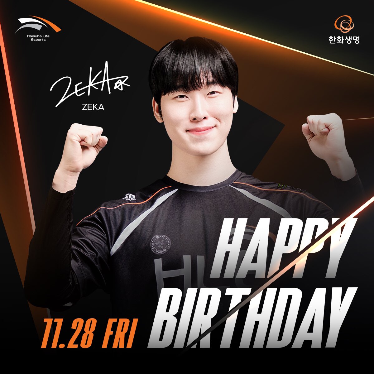 今天是HLE中单选手”Zeka“金建佑的生日!请和我们一起庆祝HLE中单选手”Zeka“的生日