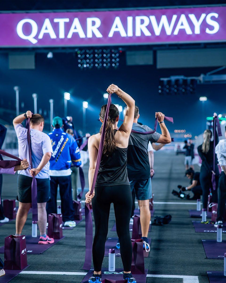 F1官方推特账号报道。诺瓦克·德约科维奇在卢赛尔国际赛道与F1官方互动!在F1卡塔尔大奖赛冲刺赛周末开始前,诺瓦克·德约科维奇在我们的发车格上带领了一场运动训练课程!#F1#QatarGP@qatarairways