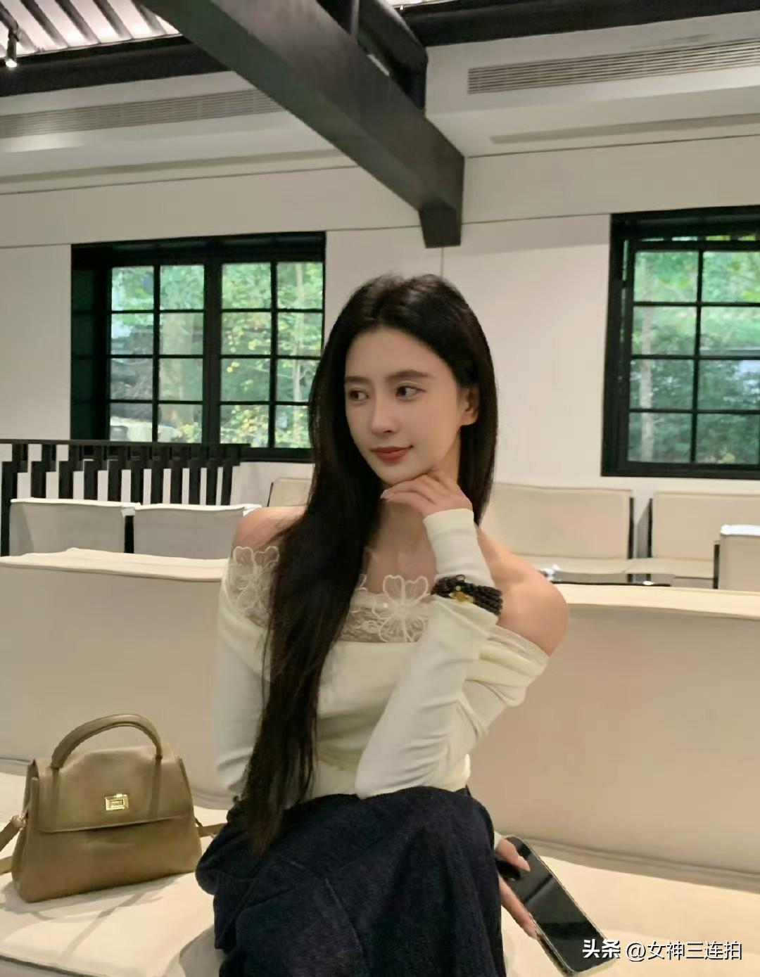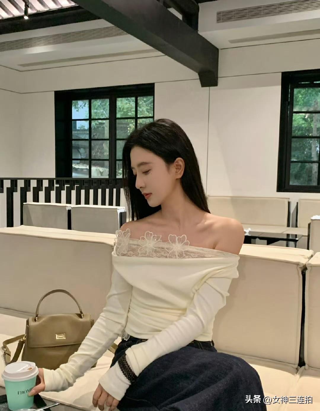 优雅下午茶时光,甜美笑容与精致穿搭相得益彰。