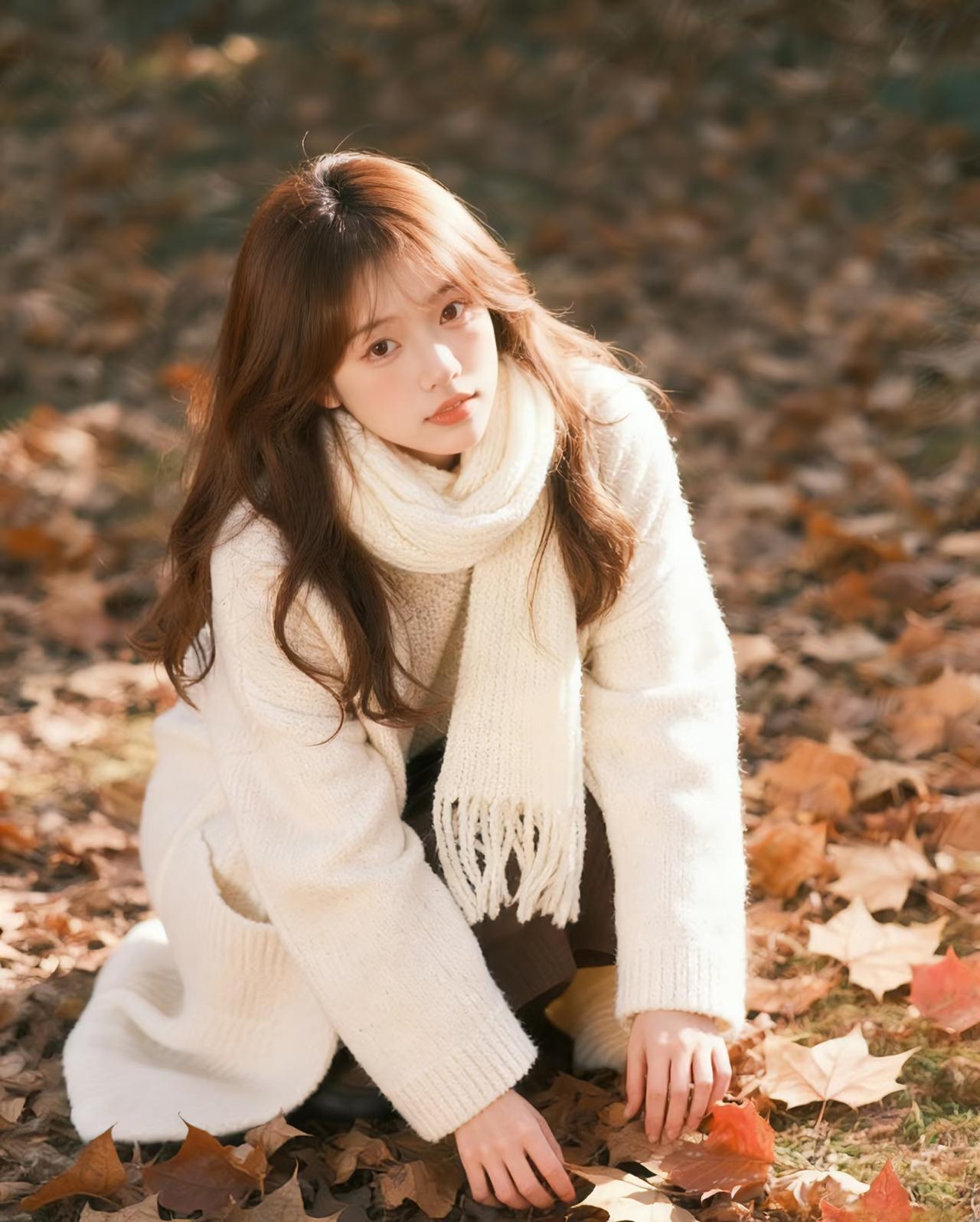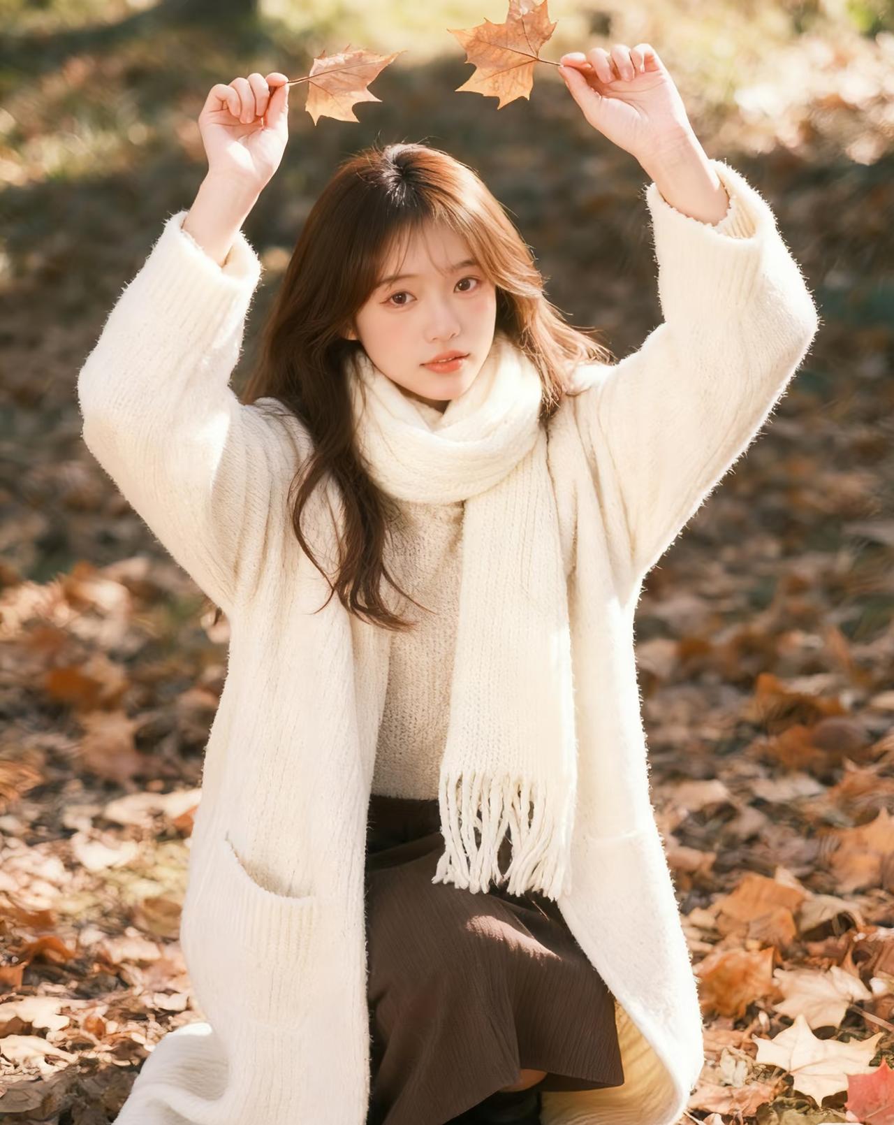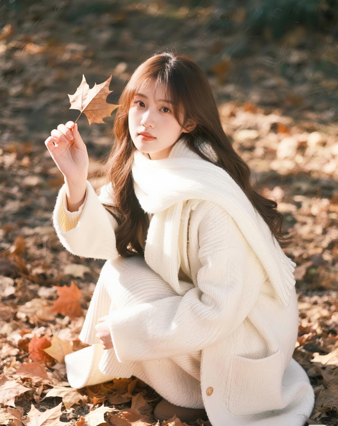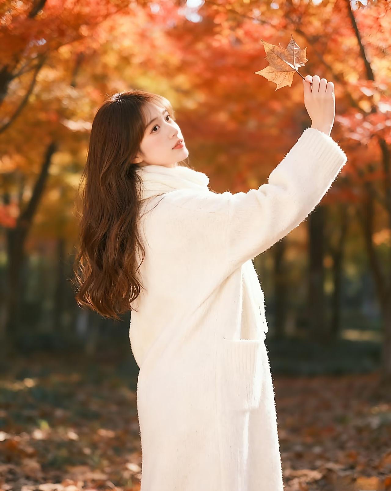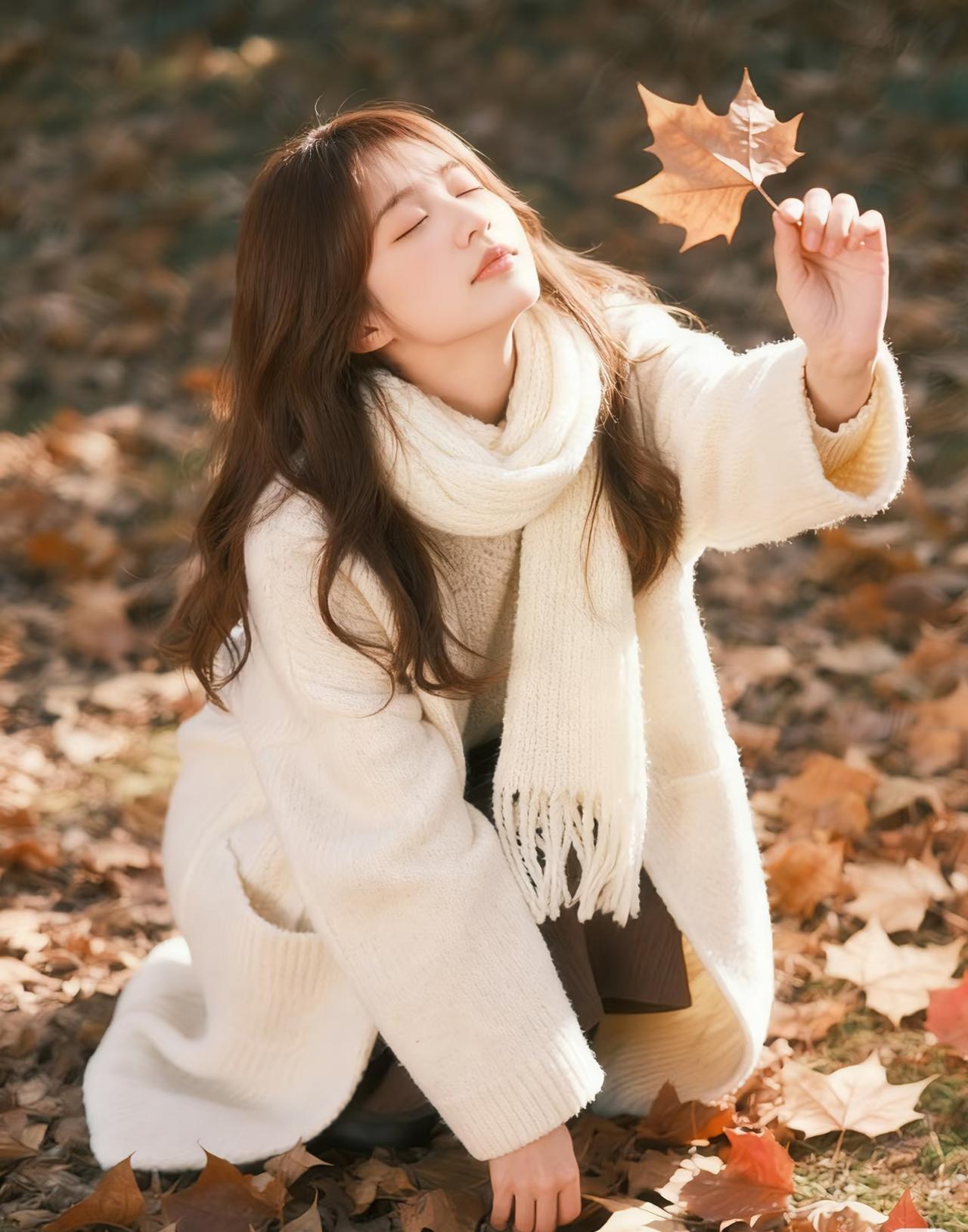 光之影 秋日暖阳下,少女与落叶的温柔邂逅。
